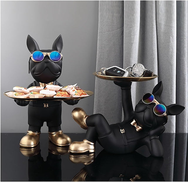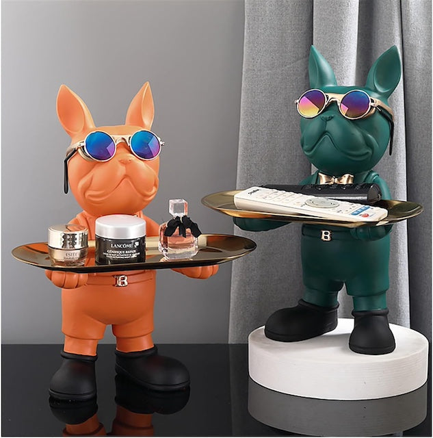 - Resin Bulldog Sculpture Tray: Our bulldog statues home decor will be the most eye-catching modern home decoration. The noble bulldog storage tray provides an exclusive space for your personal belongings. It can hold keys, watches, cell phones, rings, and accessories.