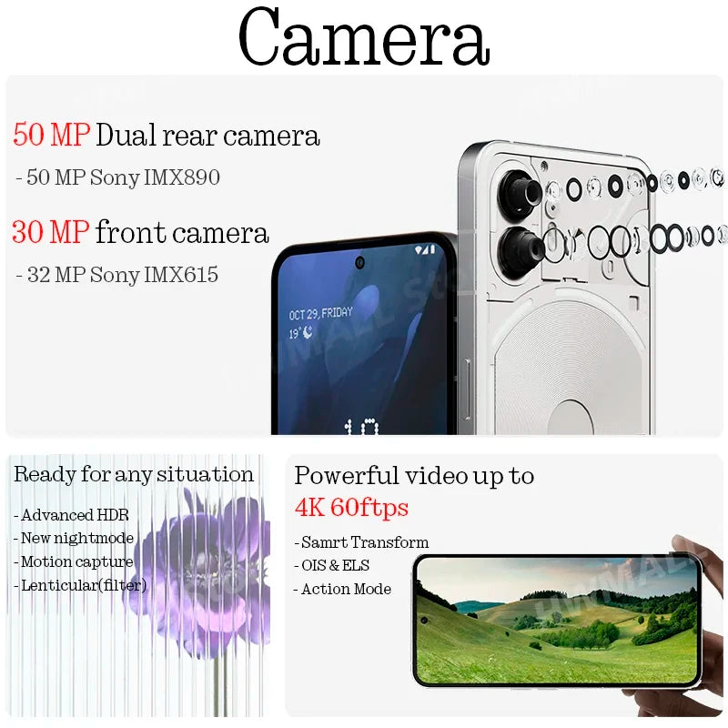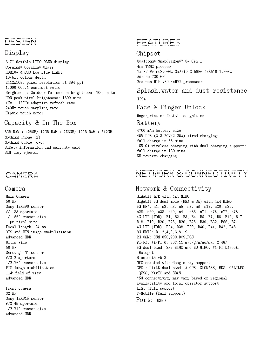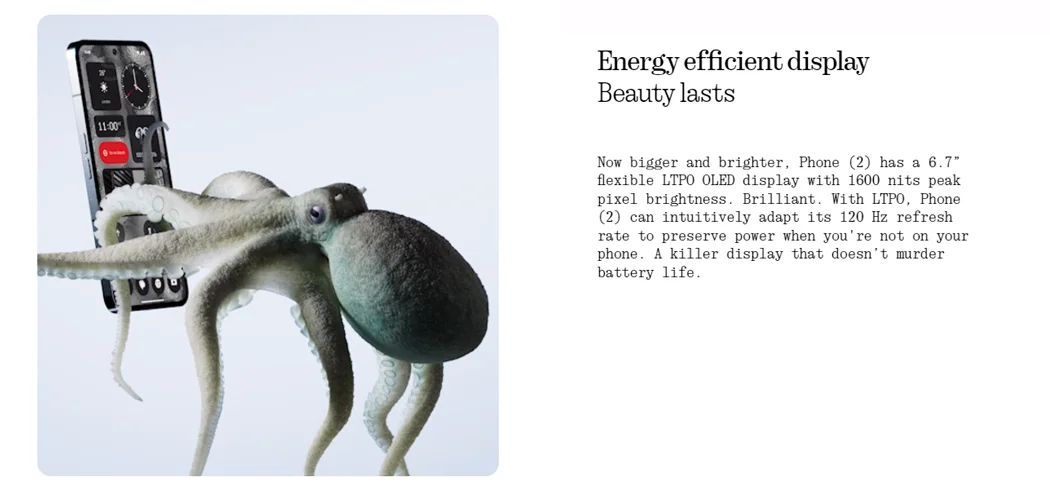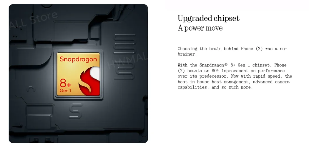 NOTHING Phone (2) 6.7” Flexible LTPO OLED Snapdragon®8+ Gen 1 Nothing OS 2.0 50 MP Dual Rear Camera 32 MP Front Camer