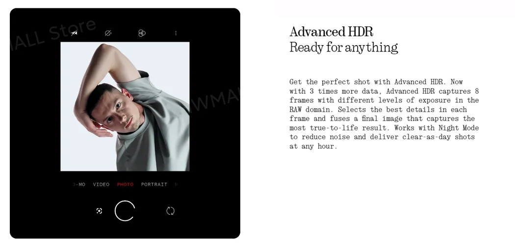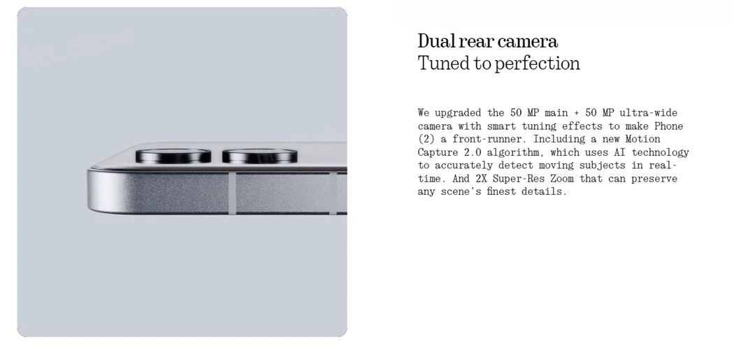 Phone (2) effortlessly captures real life as it’s happening. With an 18-bit Image Signal Processor (ISP), it is capable of capturing 4,000 times more camera data than Phone (1). Allowing us to deliver advanced new algorithms that make photos and videos more dynamically accurate than ever.