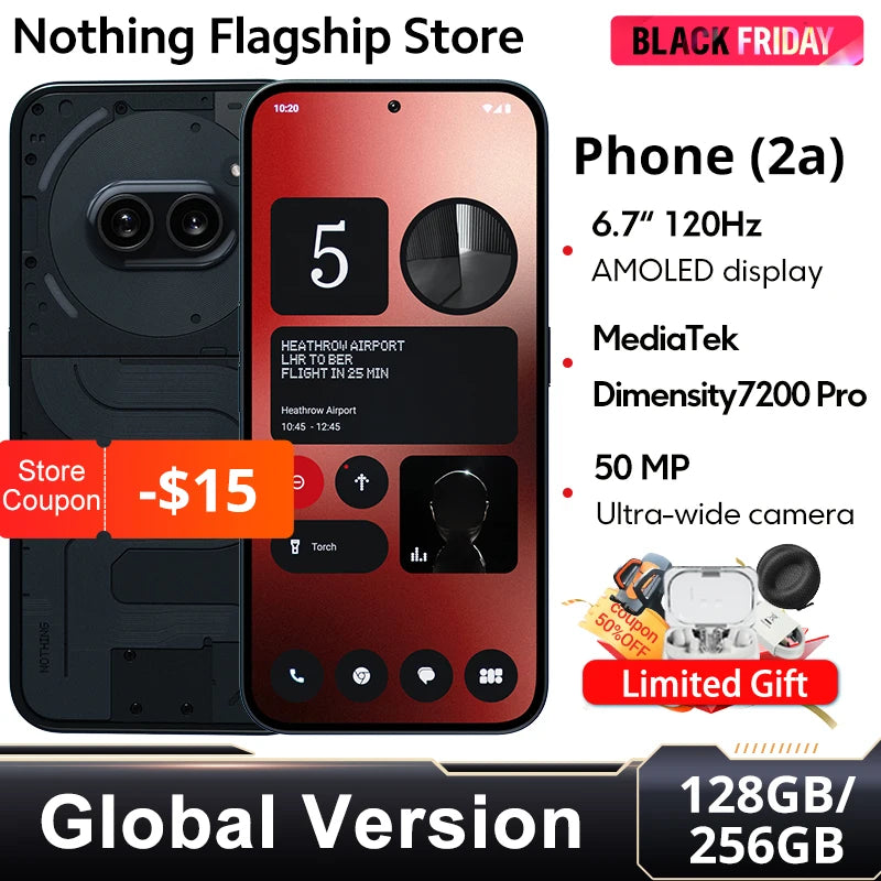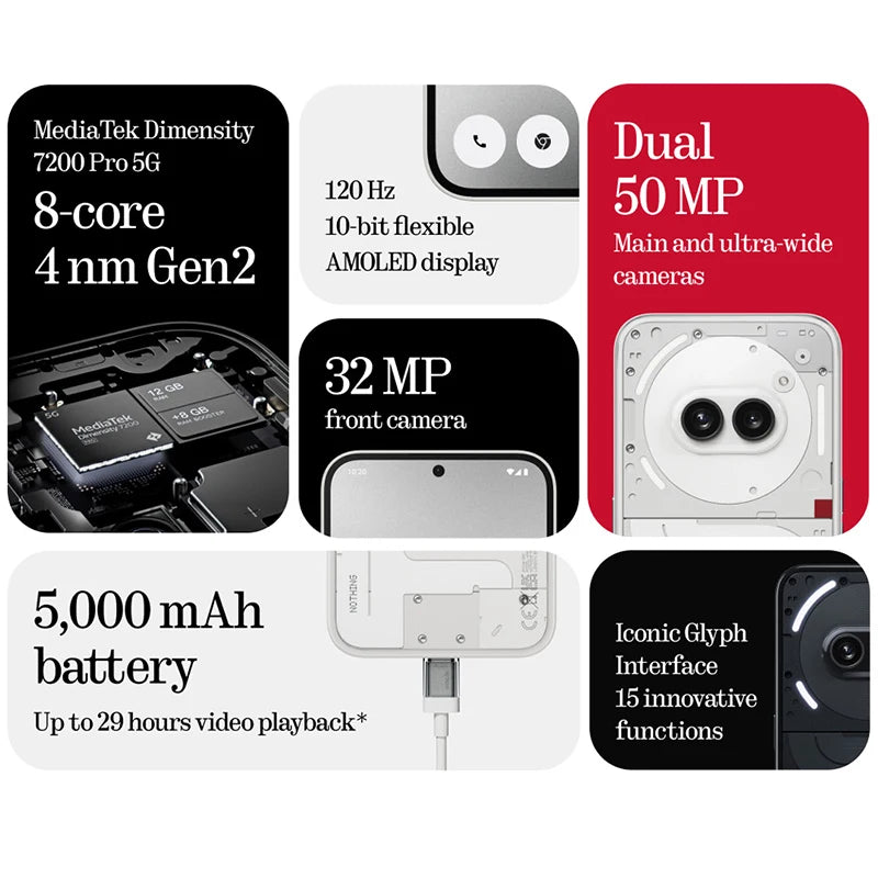 Nothing Phone (2a) Global Version Smartphone Dual 50MP Cameras Dimensity 7200 Pro Processor 6.7" 120Hz Flexible AMOLED Display