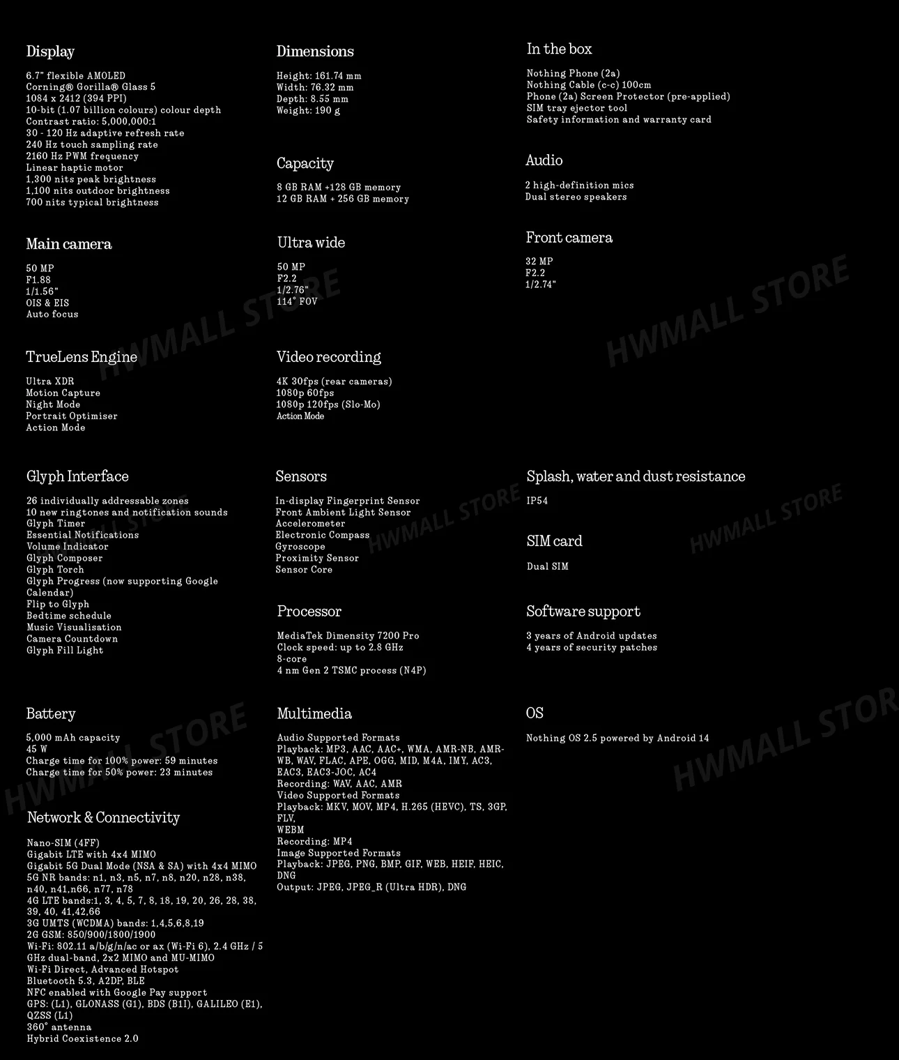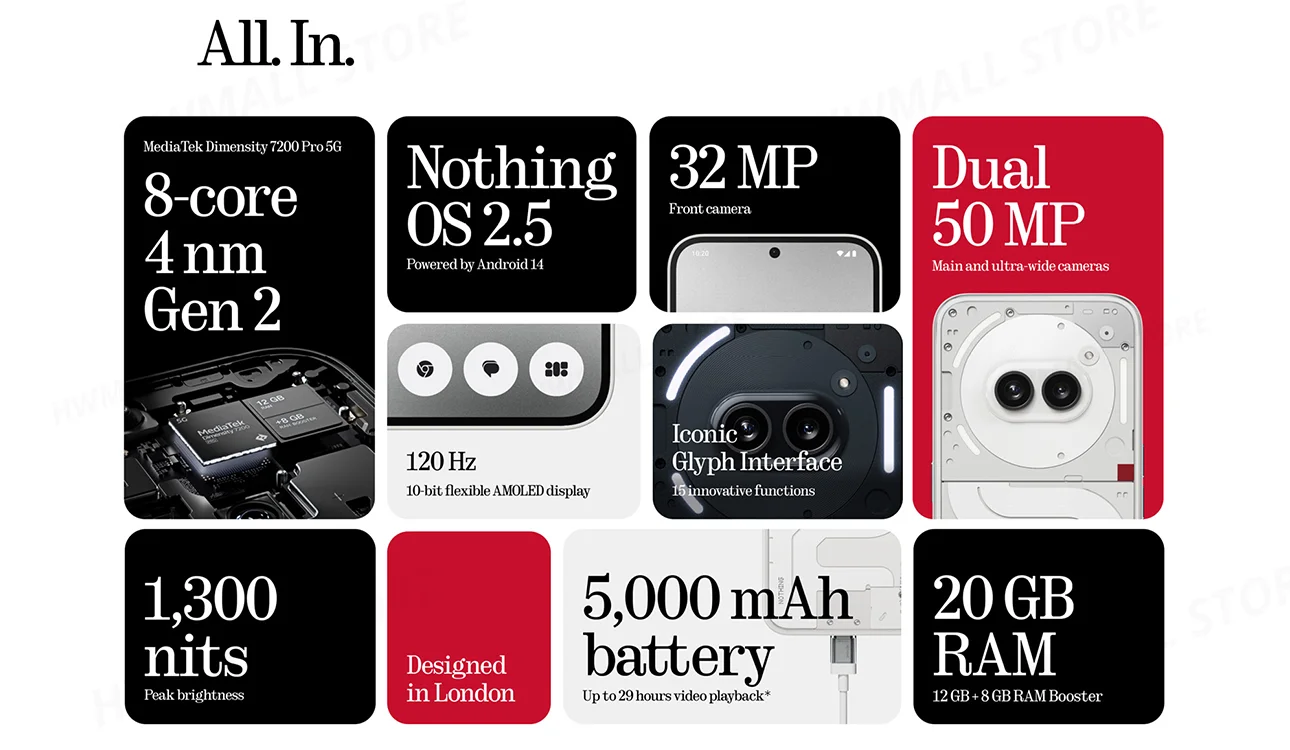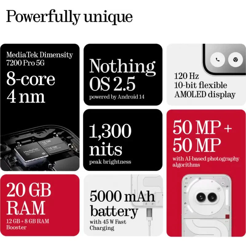Nothing Phone(2a) 6.7” AMOLED Display 120Hz MTk Dimensity 7200 Pro Dual 50MP Camera Battery 5,000 MAh 45W