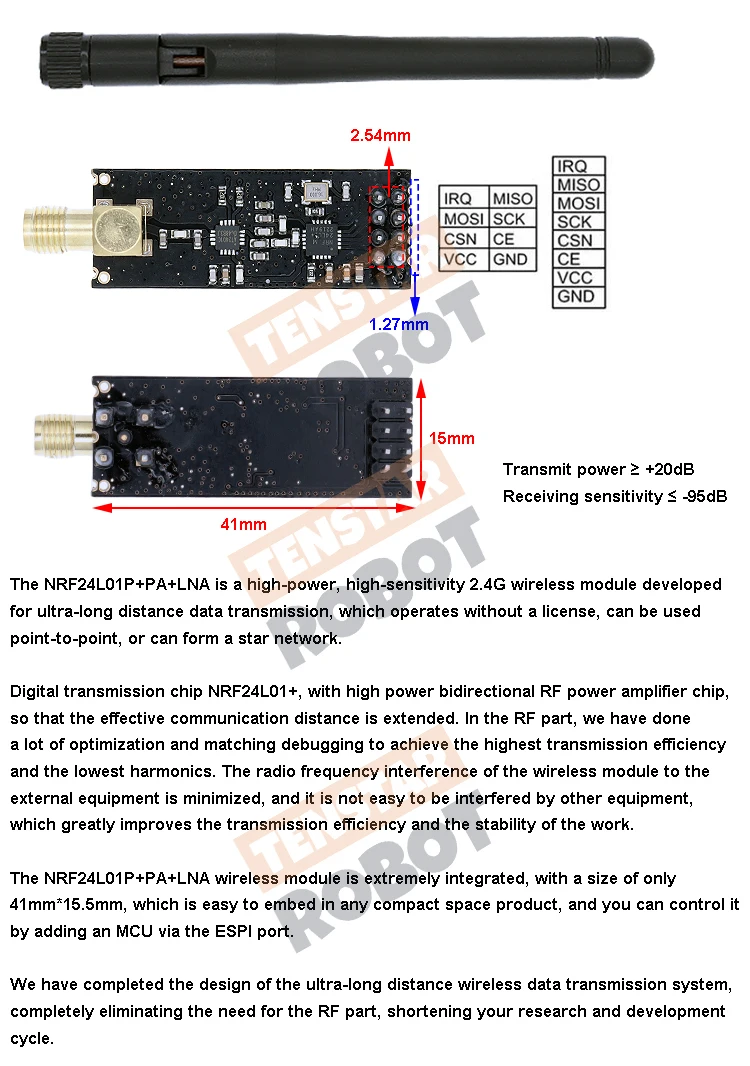 NRF24L01+PA+LNA 2.4G Wireless Module 1100-Meter Long-Distance With Antenna