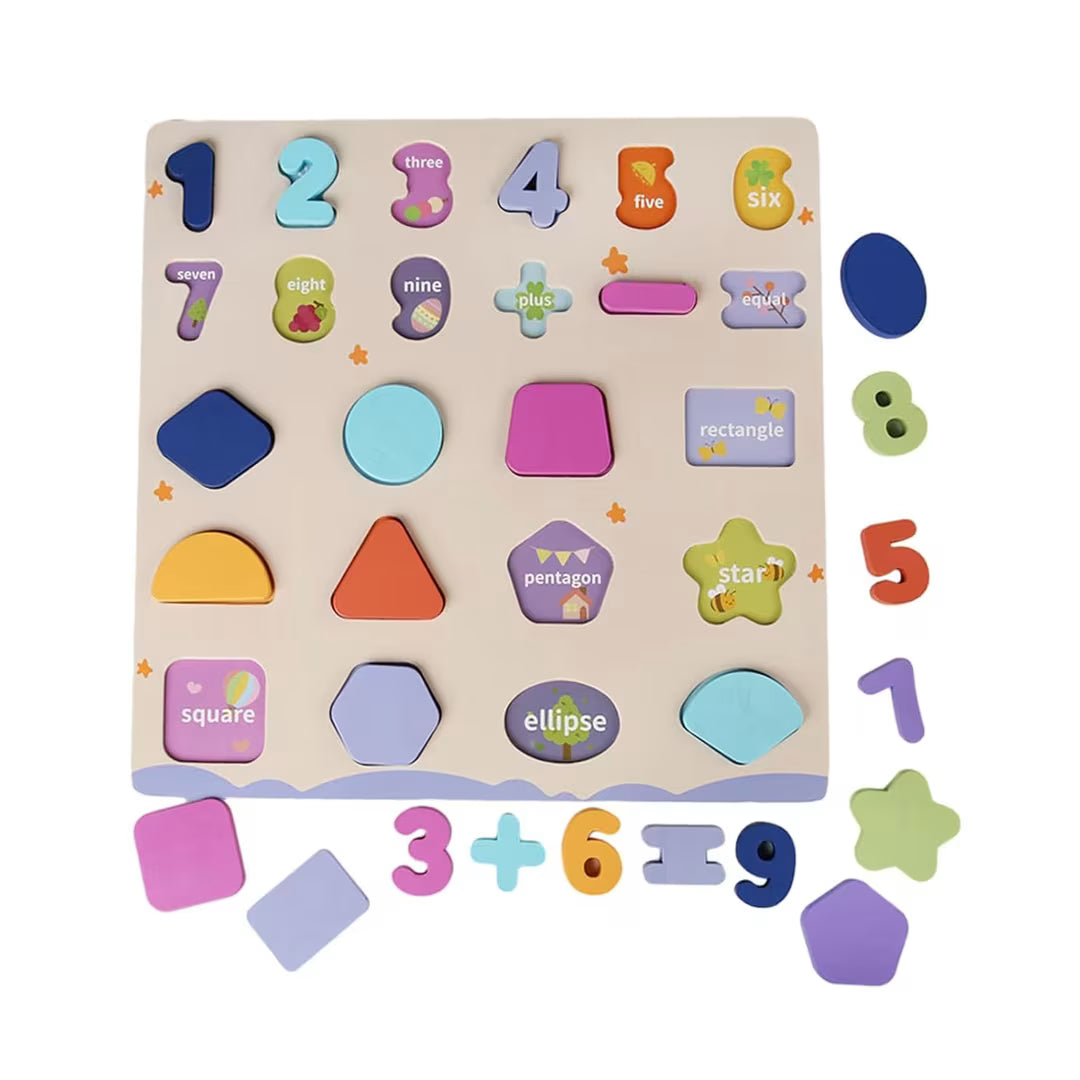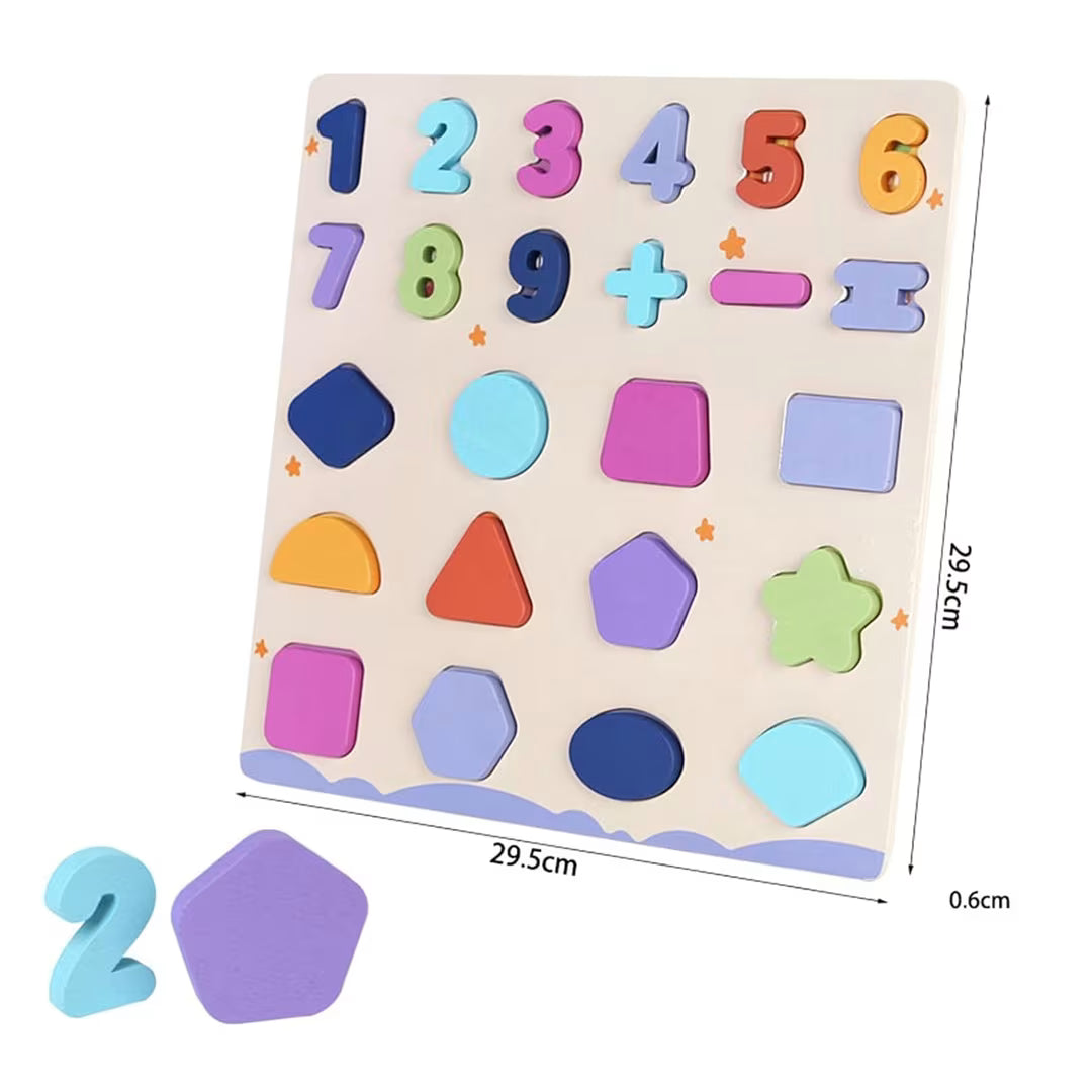 Encourage early learning with this vibrant wooden numbers and shapes puzzle board. Designed to combine fun with education, this interactive toy helps children develop essential math, shape recognition, and problem-solving skills.