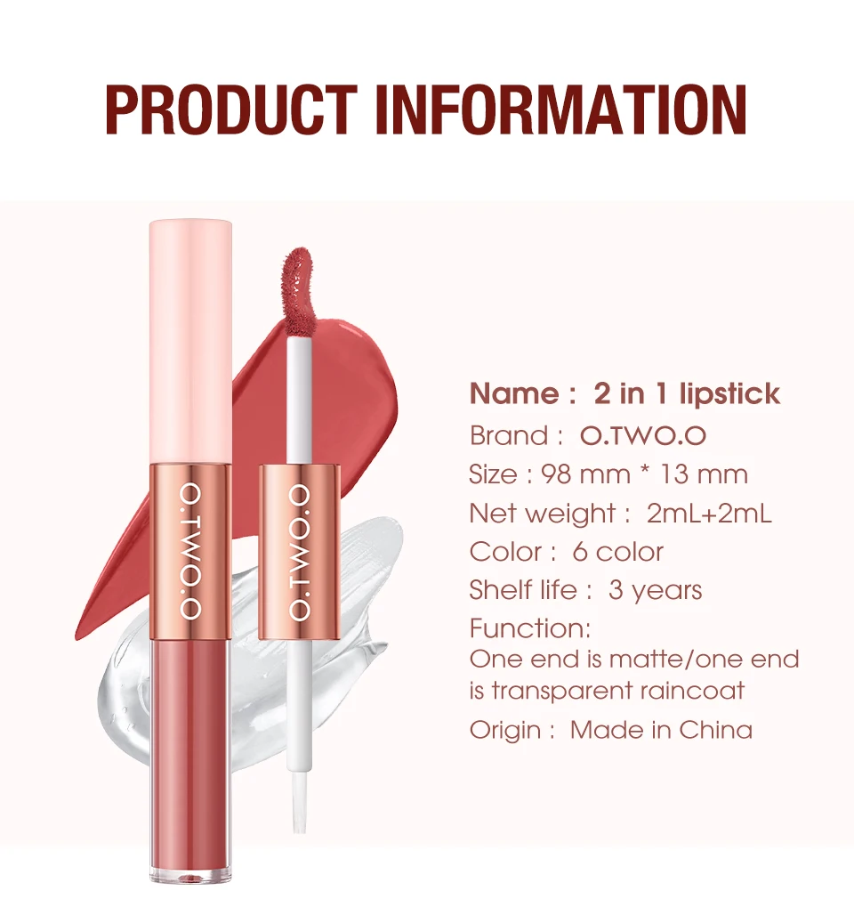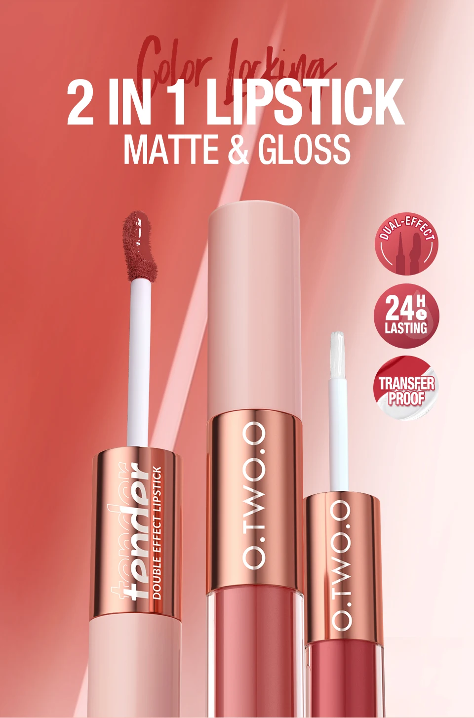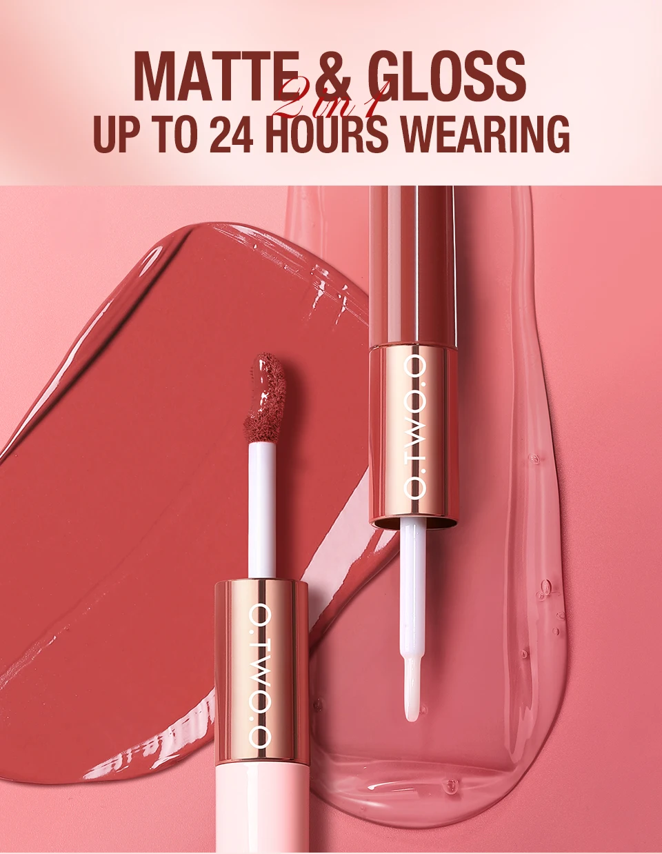 O.TWO.O Matte Lipstick Double Head Lip Coat 24HR Non-stick Cup Lip Gloss Tint Plumper Long Lasting Waterproof Lipstick Makeup