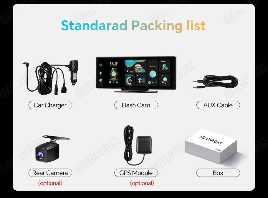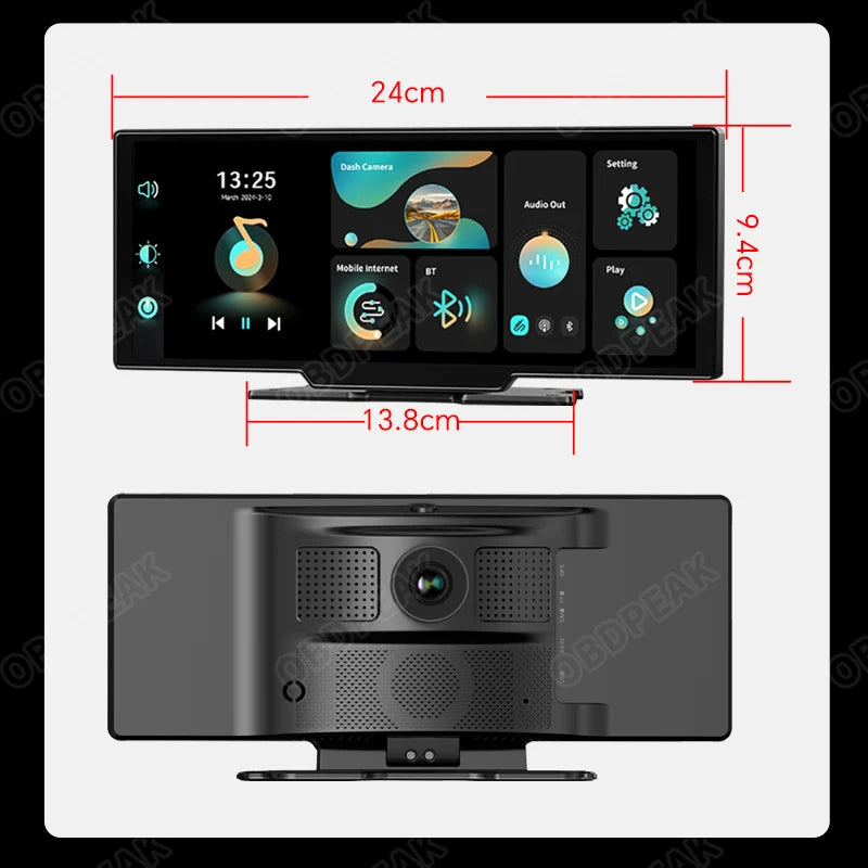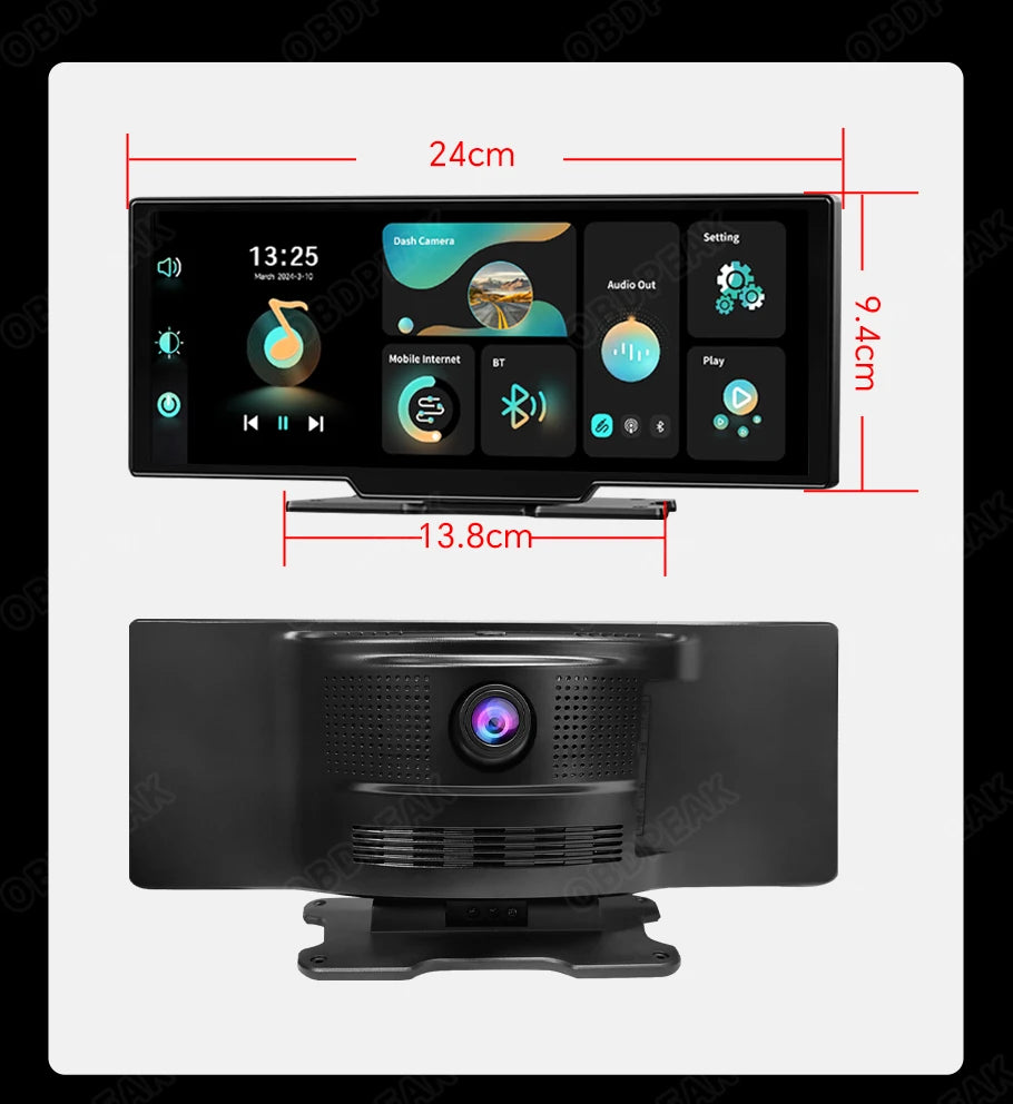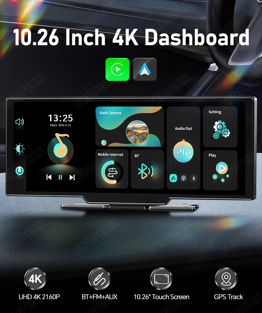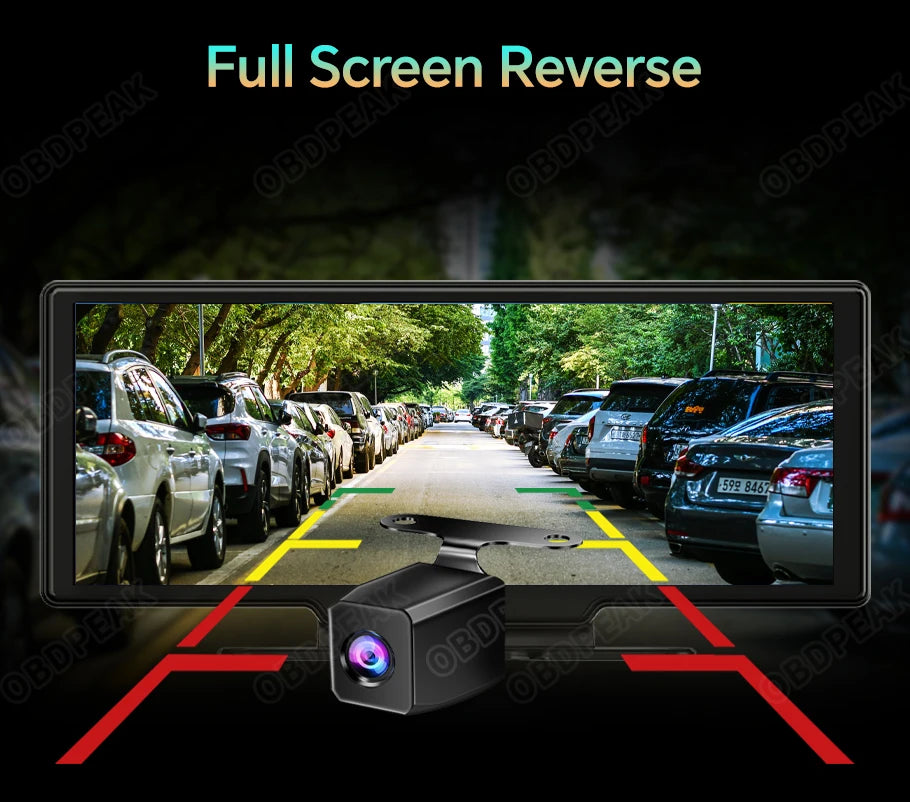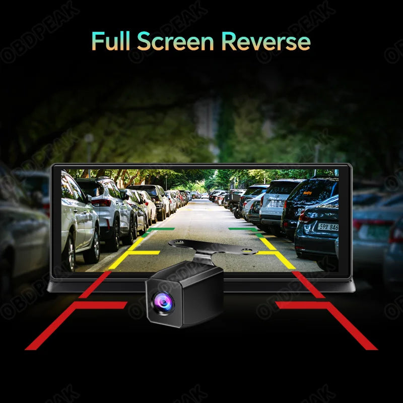 OBDPEAK k2 2.0 Dash Cam 10.26" 4K Car Dvr Camera Carplay & Android Auto GPS Navigation Rearview Mirror Dashboard Video Recorder