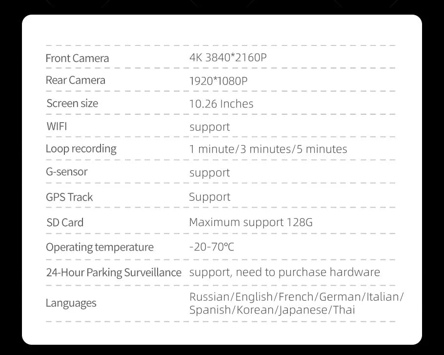 Front 4K 2160P + Rear 1080P Record