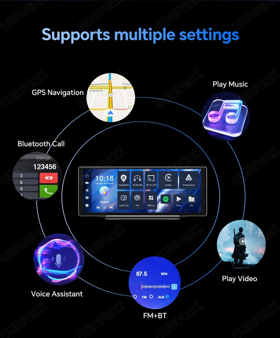 The OBDPEAK T30 has a crazy built-in 3 system, Android 12 system/Carplay system/Android Auto system, and has added an external camera to meet all your car driving needs!