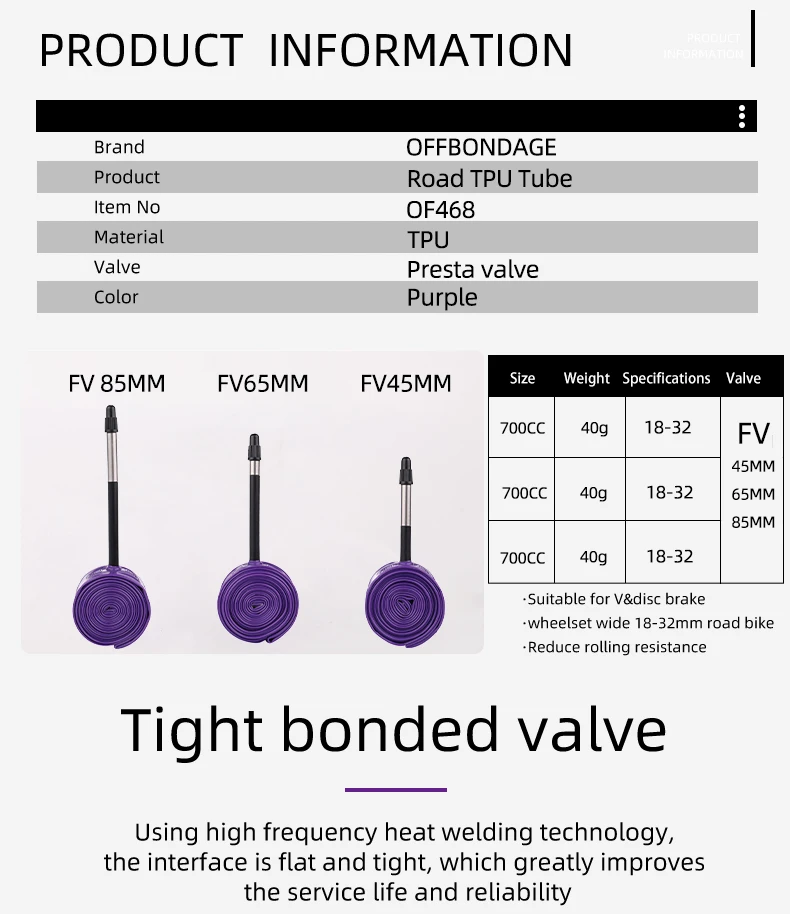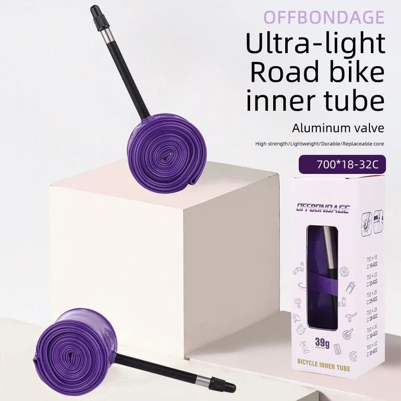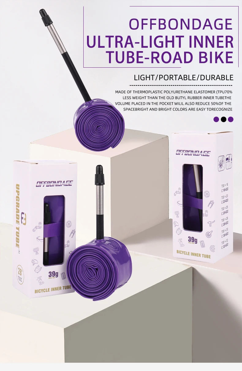 OFFBONDAGE Ultralight 39g Bike Inner Tube 700 X 18 25 28 32 Road MTB Bicycle TPU Tire 45/65/85mm Length French Valve Super Light
