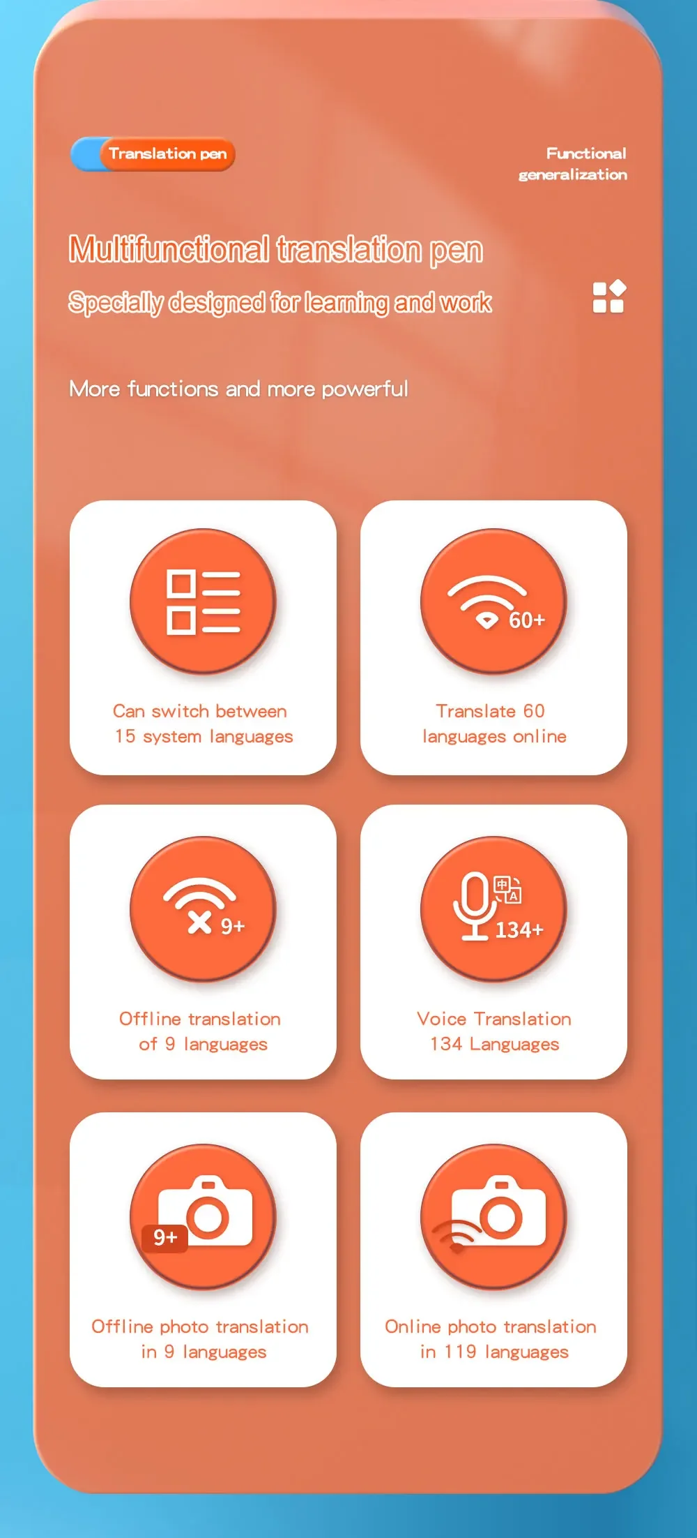 Scan translation+Voice translation+Text extract+Dictionary+Favorites
