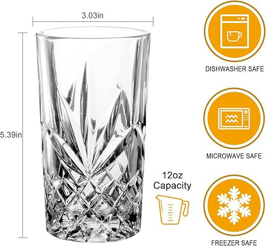 - Elevate your drinking experience with this elegant set of six juice/whiskey glasses, each with a capacity of 365ml.