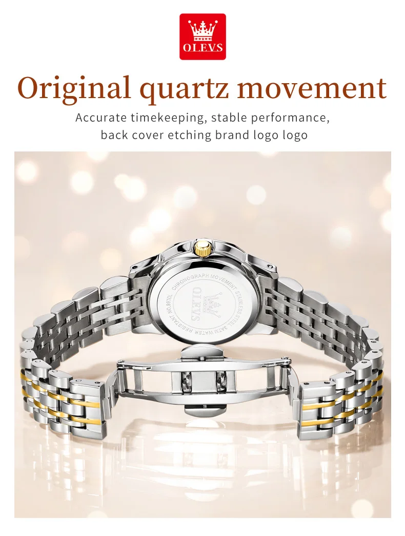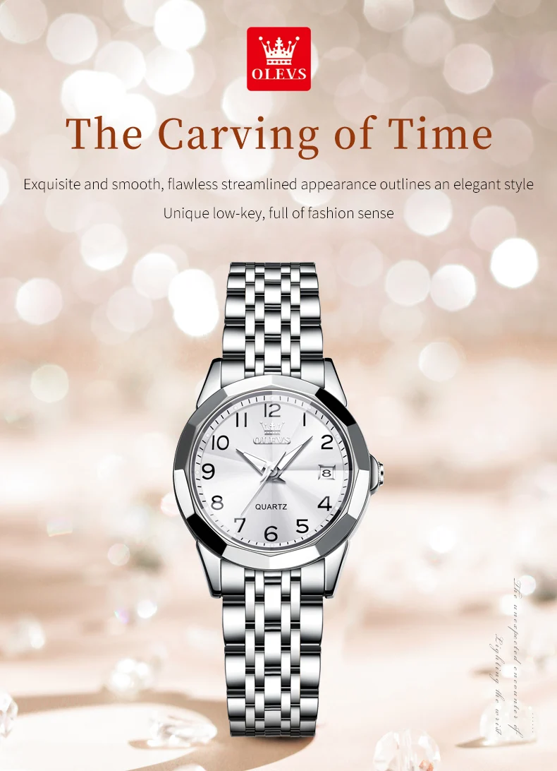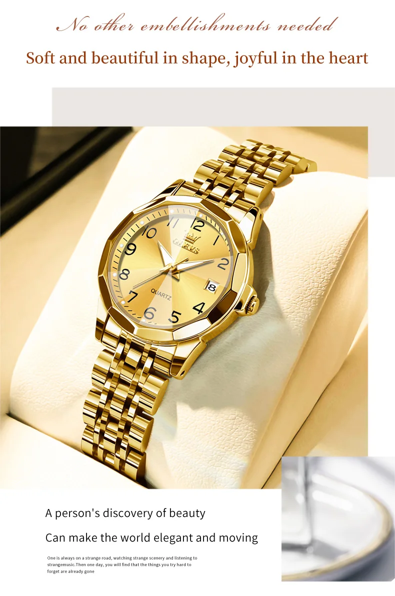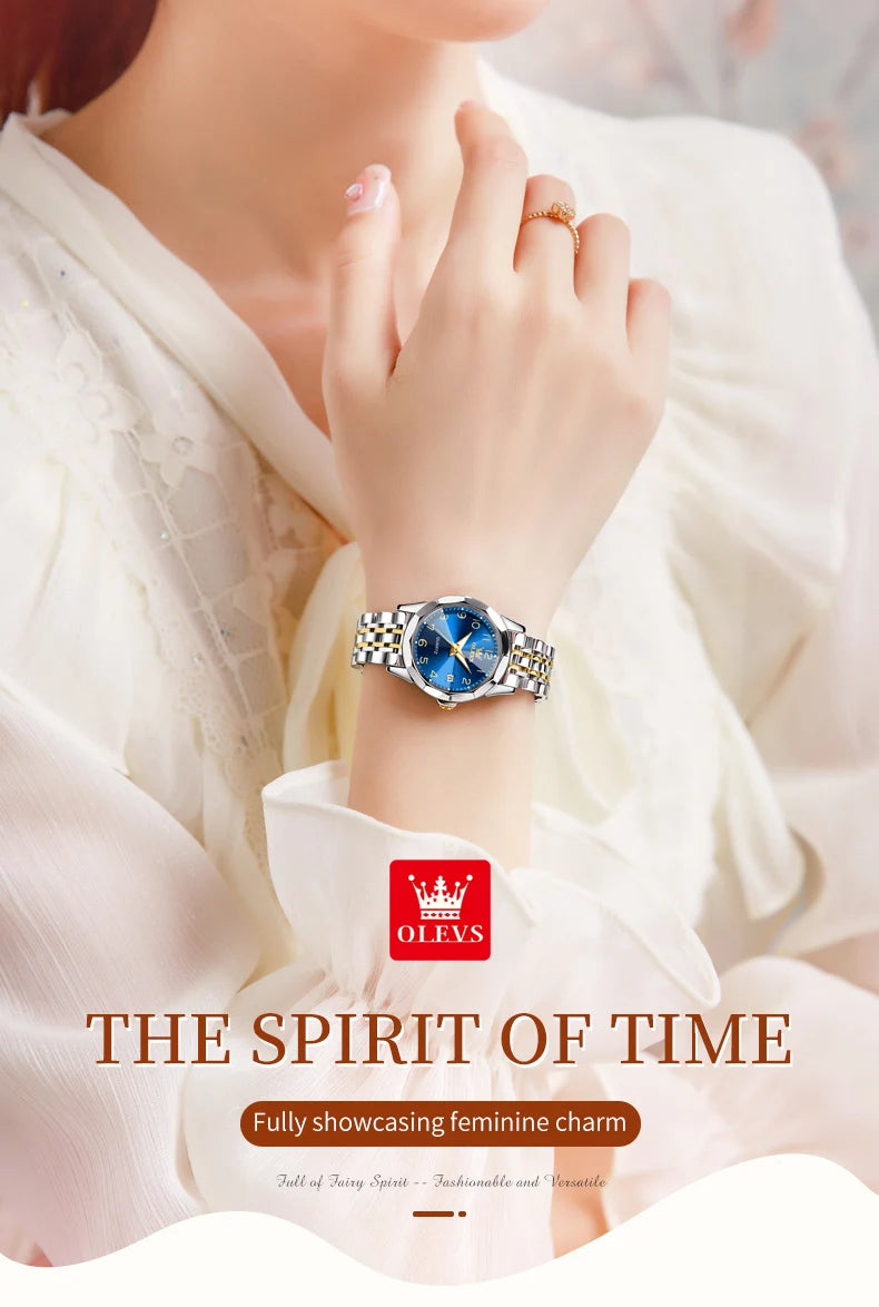OLEVS 9970 Original Luxury Quartz Watch for Women Rhombus Mirror Digital Dial Calendar Stainless Steel Waterproof Wrist Watches