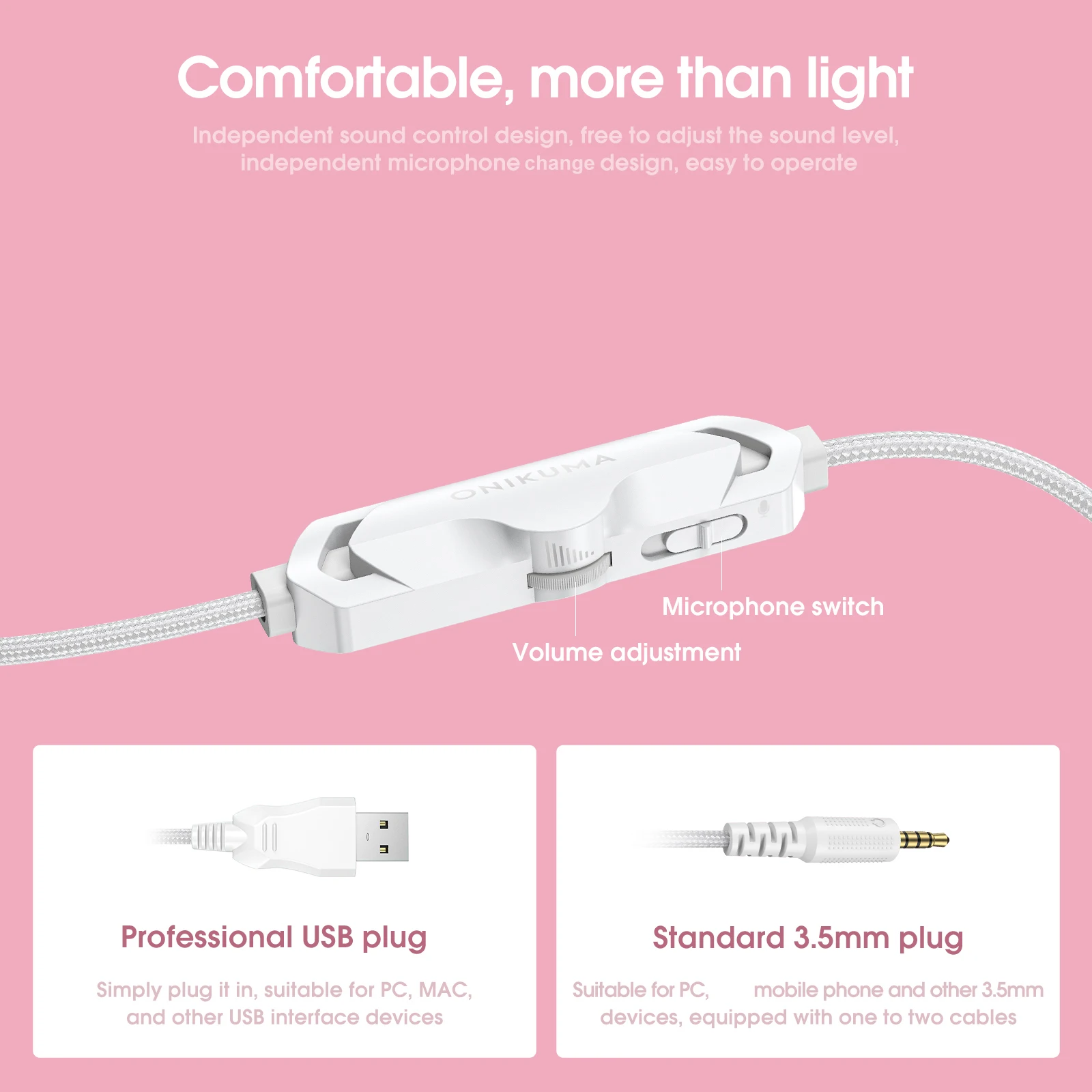 onikuma 2025 NEW Gaming Cute Headset, Wired Over-Ear Headphones with Noise Cancelling Microphone, Surround Sound, LED Backlight