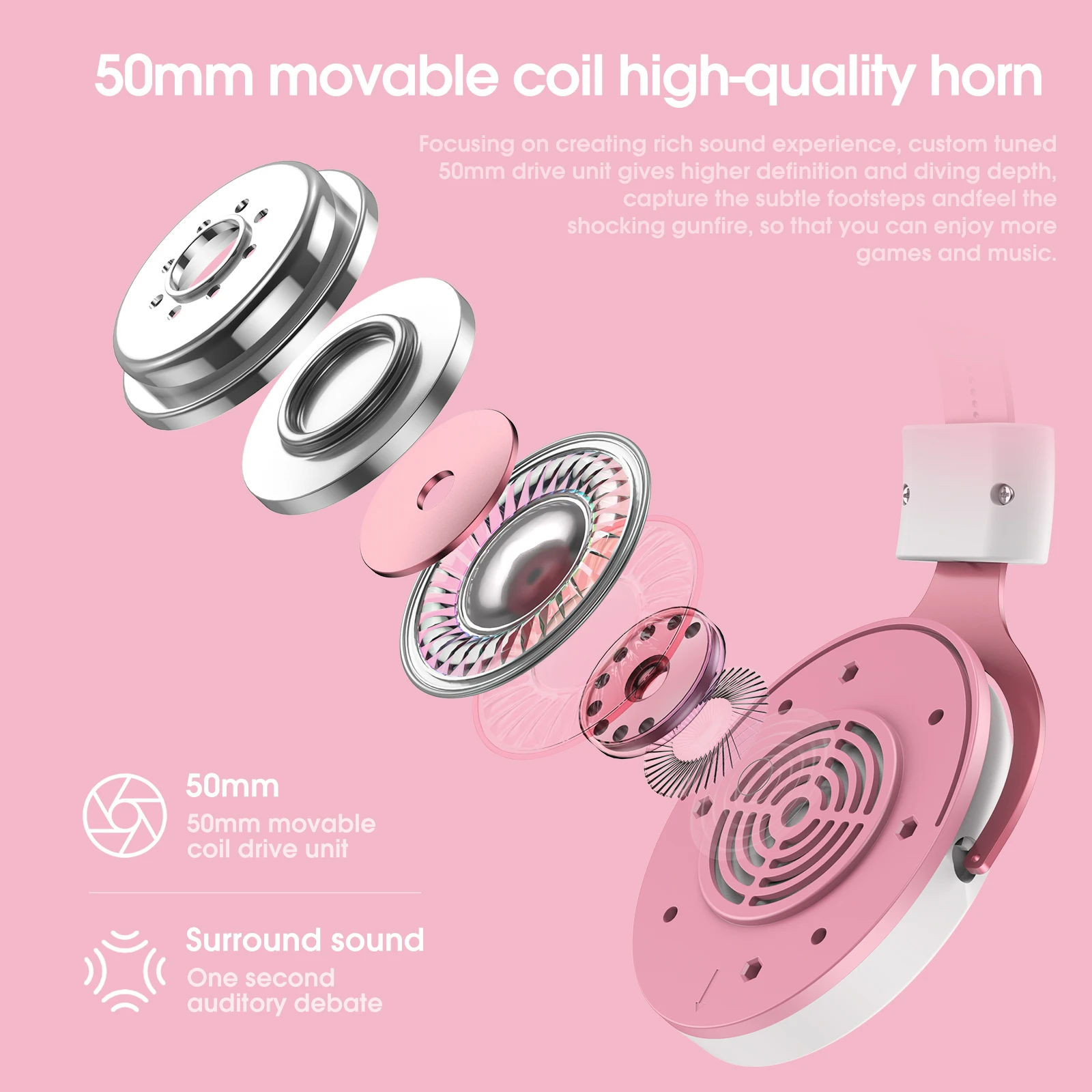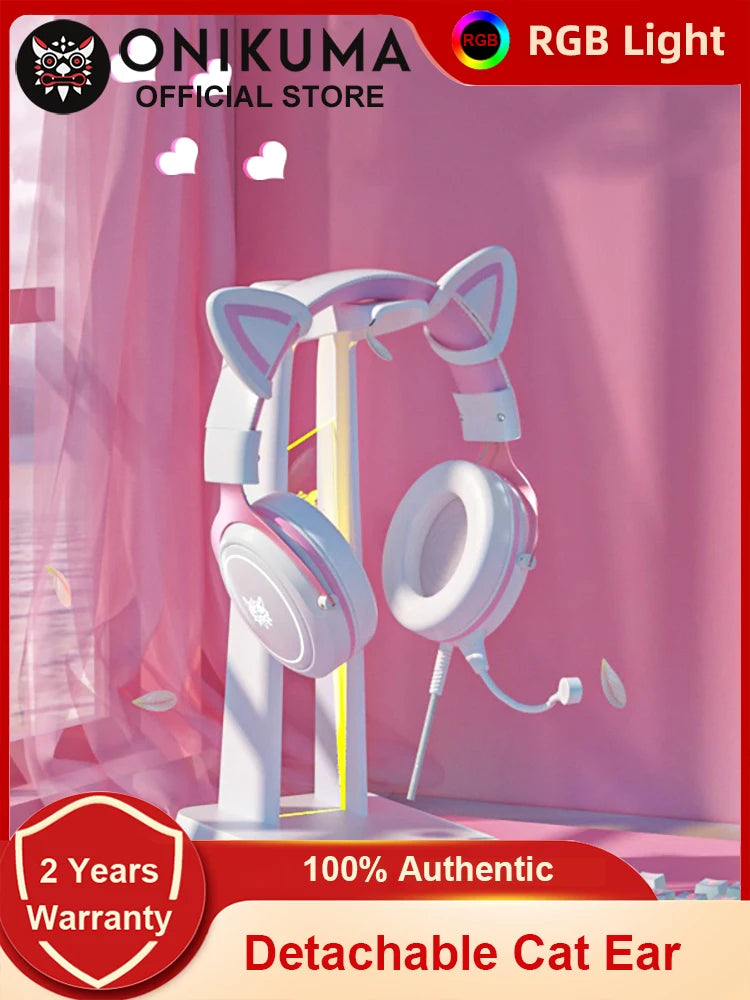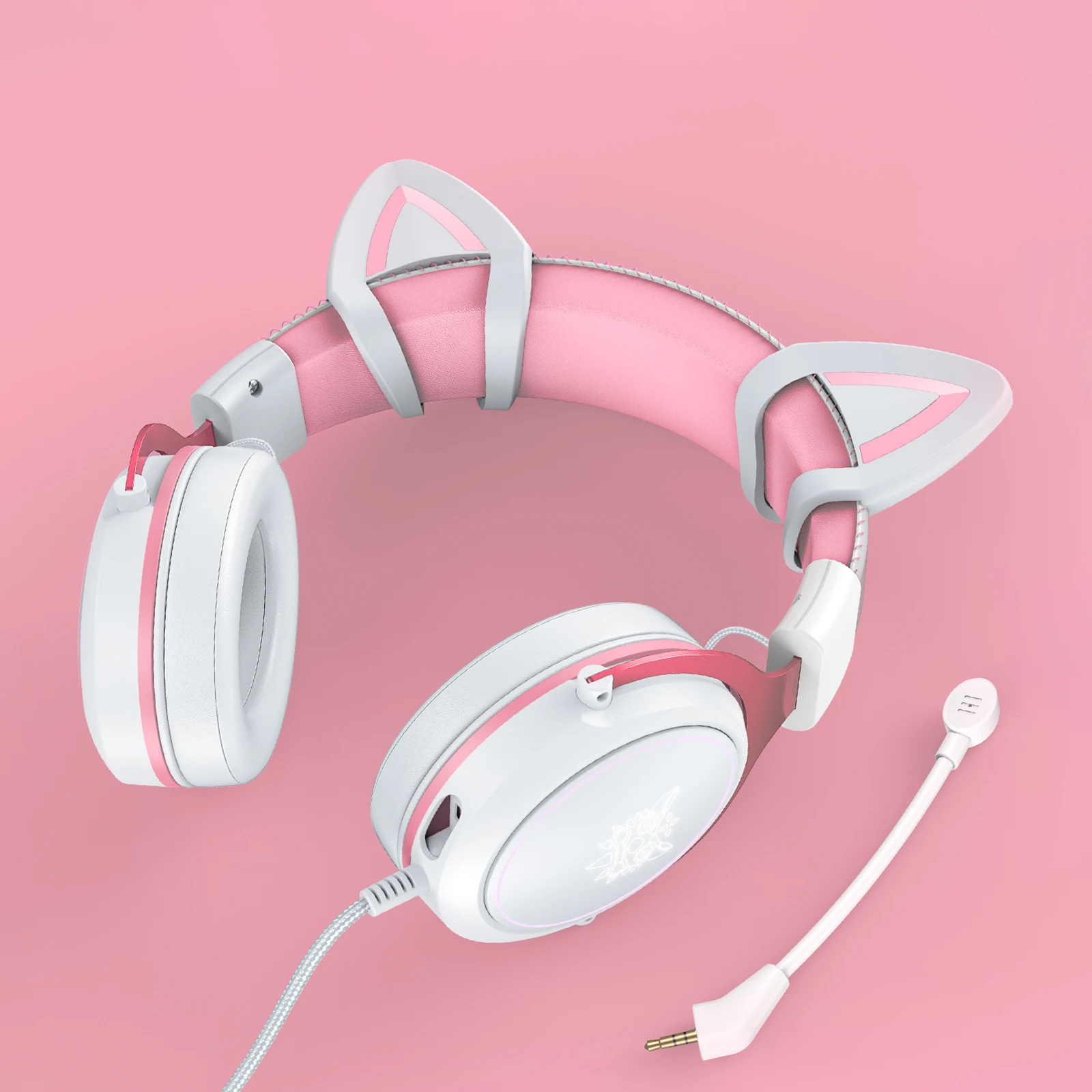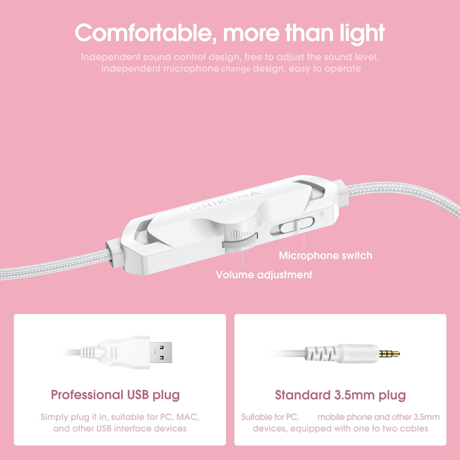 onikuma Cat Ear Gaming Cute Headset, Wired Over-Ear Headphones with Noise Cancelling Microphone, Surround Sound, LED Backlight f
