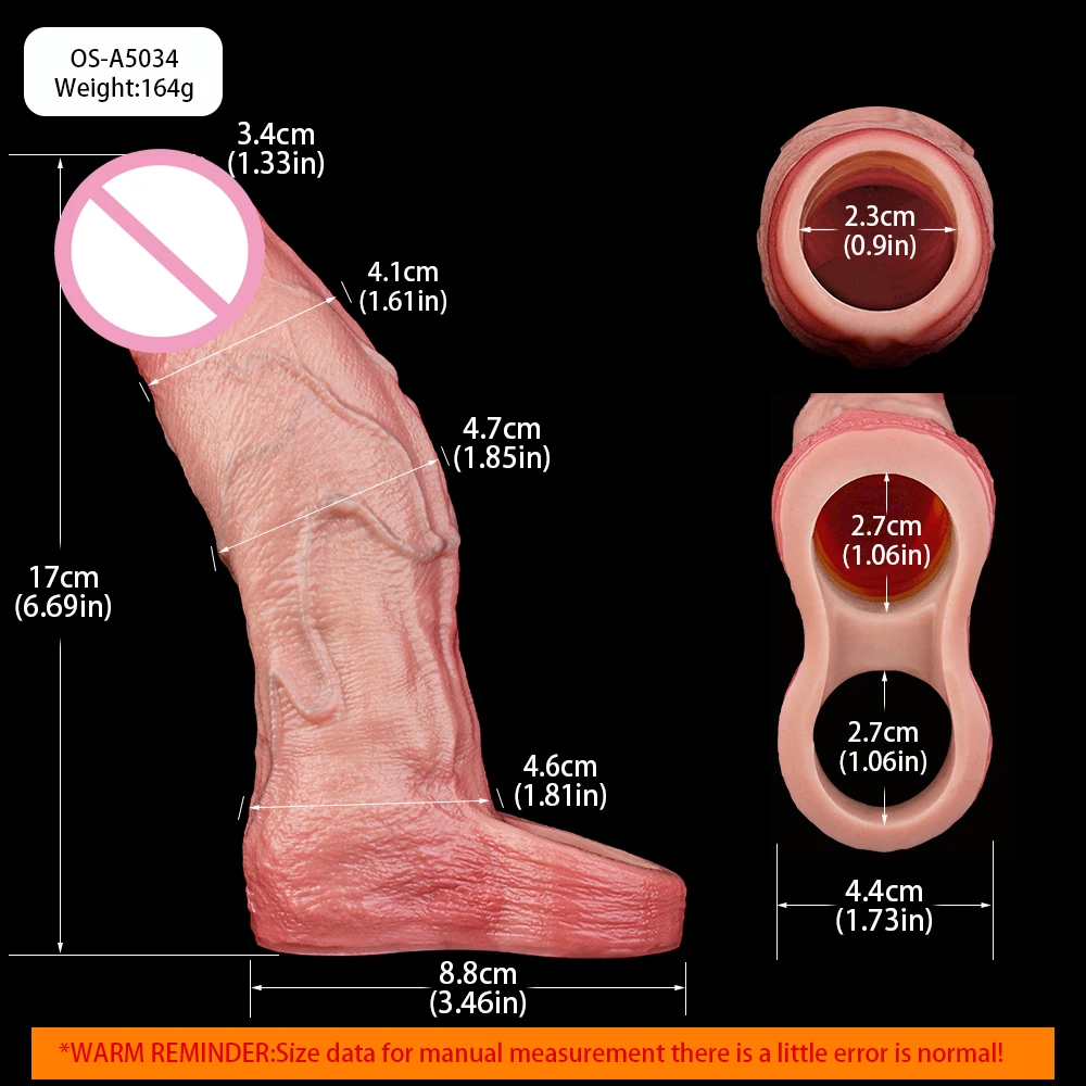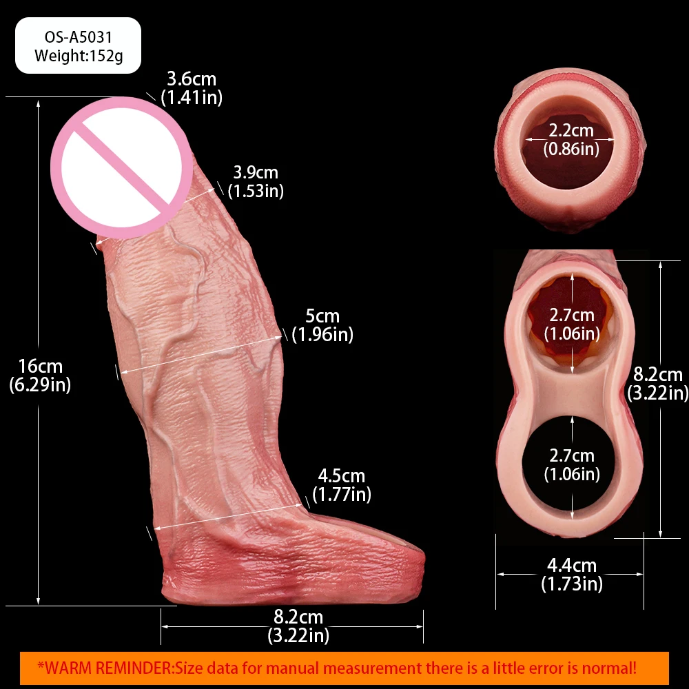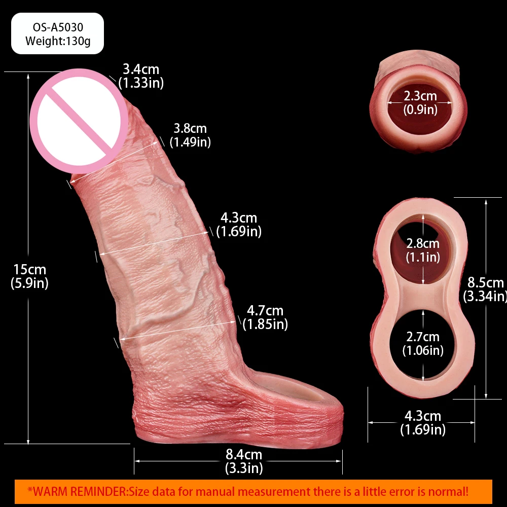 ORALSX Open-ended artificial Penis Reusable Extend Device Cock Cover Sex Toys For Men Cock Enlargement Adult Game Pleasure