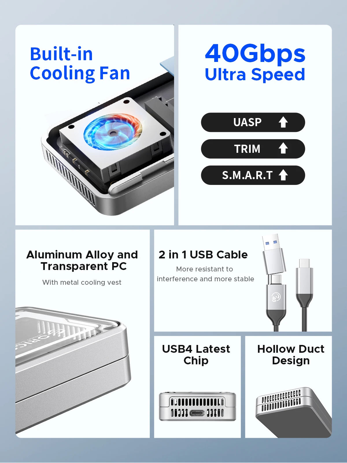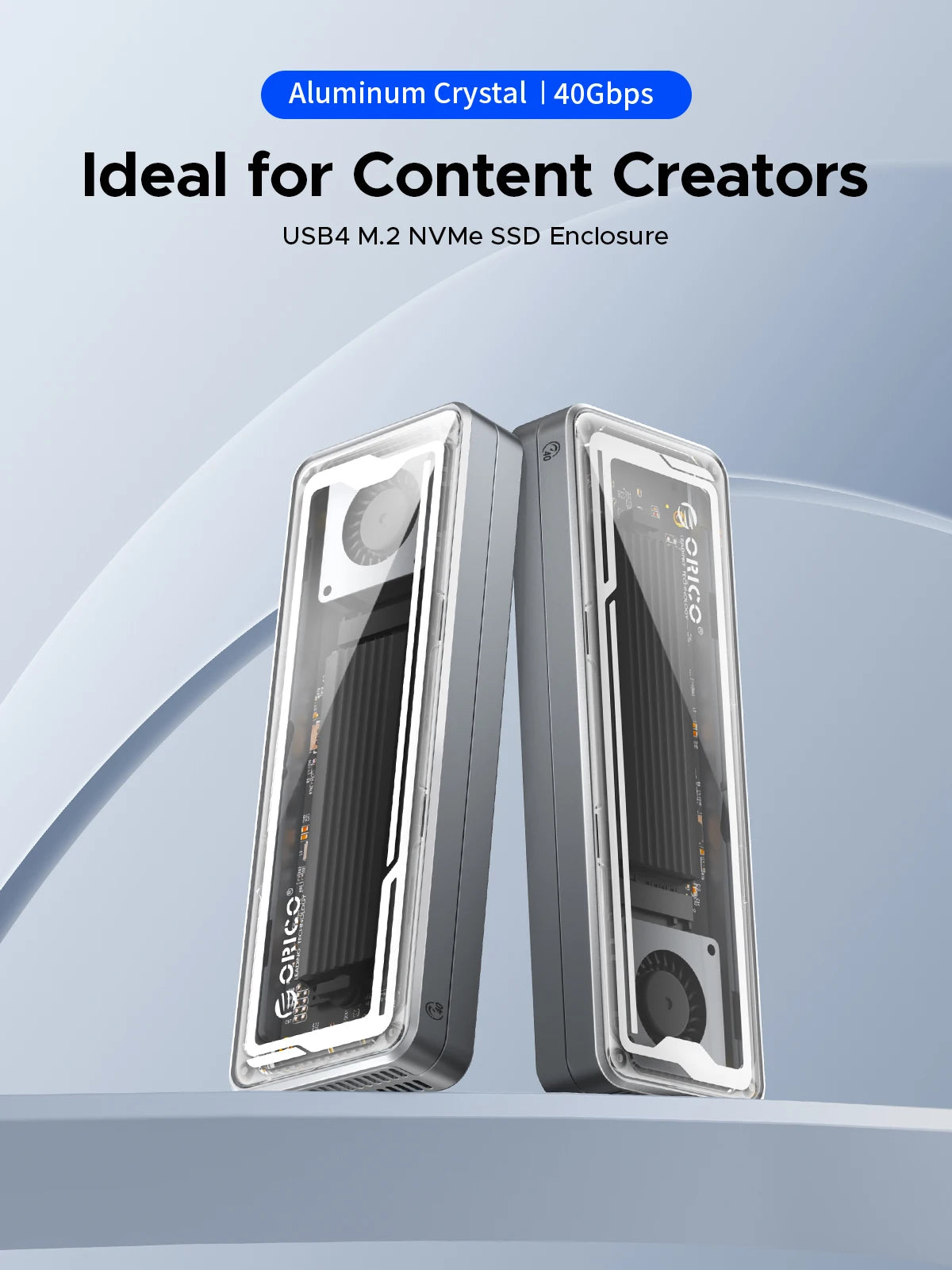 ORICO 40Gbps USB4 M.2 SSD Enclosure 8TB with with Cooling Fan PCIe4.0 NVME Enclosure Aluminum Compatible Thunderbolt 3/4 for Mac