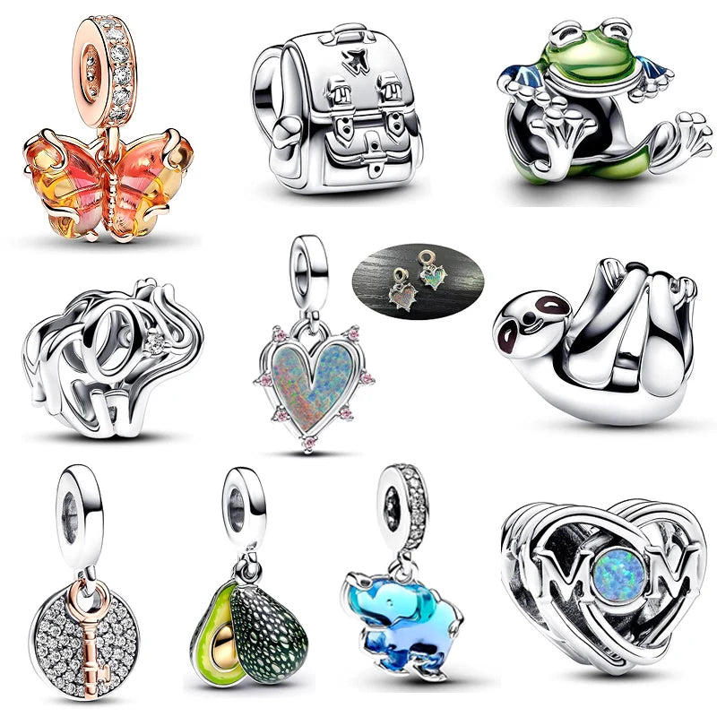 Original 100% 925 Silver Hanging Sloth Climbing Frog Colour Heart School Bead Charms Fit Pantaro Bracelet DIY Jewelry Women Gift