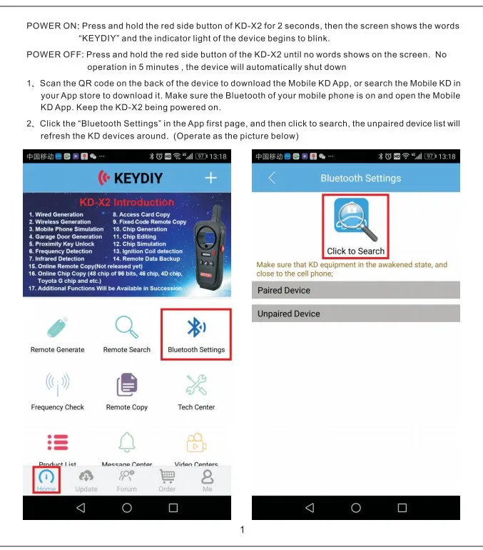 KEYDIY KD-X2 can work with PC software by USB-B connection, and work with IOS Android phone or tablet by OTG connection.