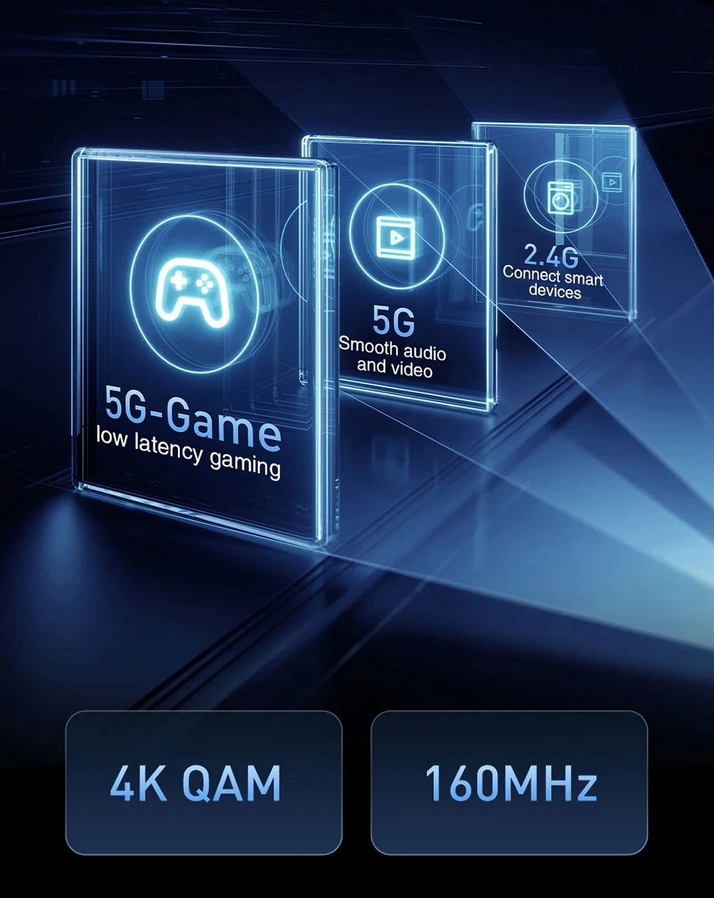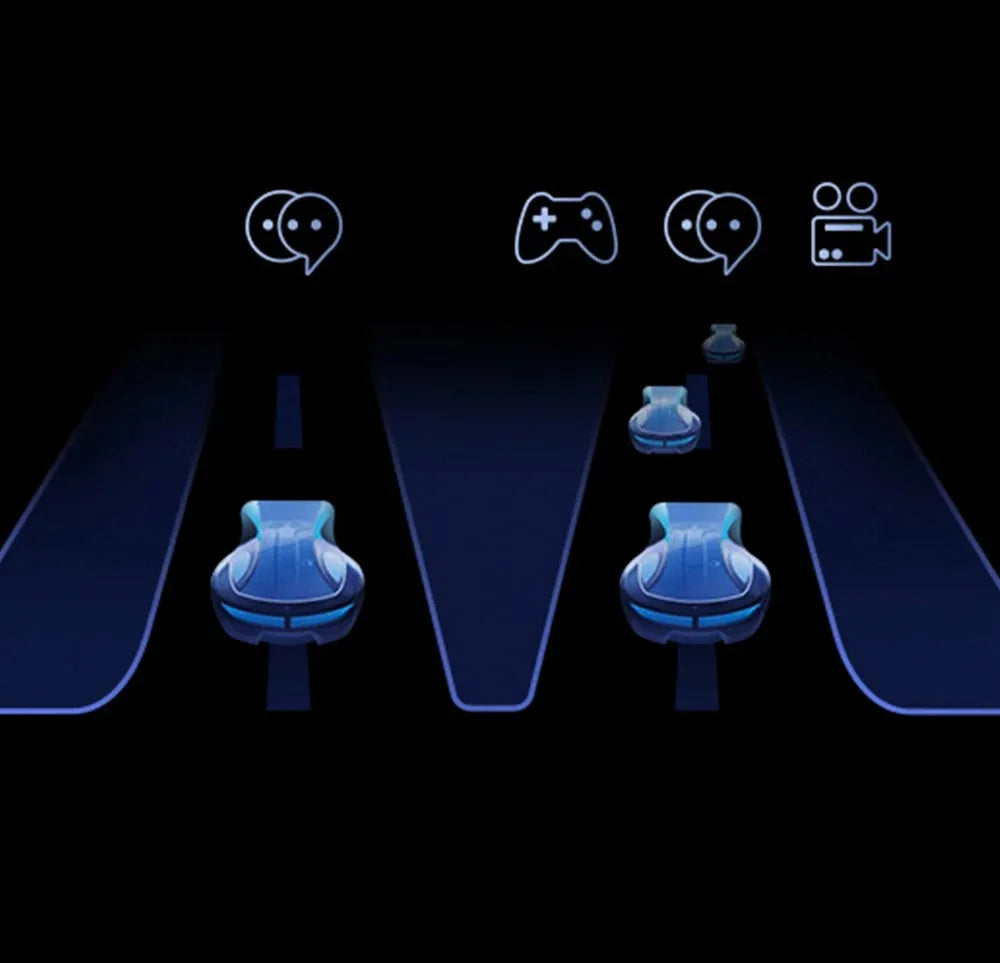 ● Dual-band/tri-band free switching, allowing for personalized allocation of frequency bands and non-interference between game and device connections.
