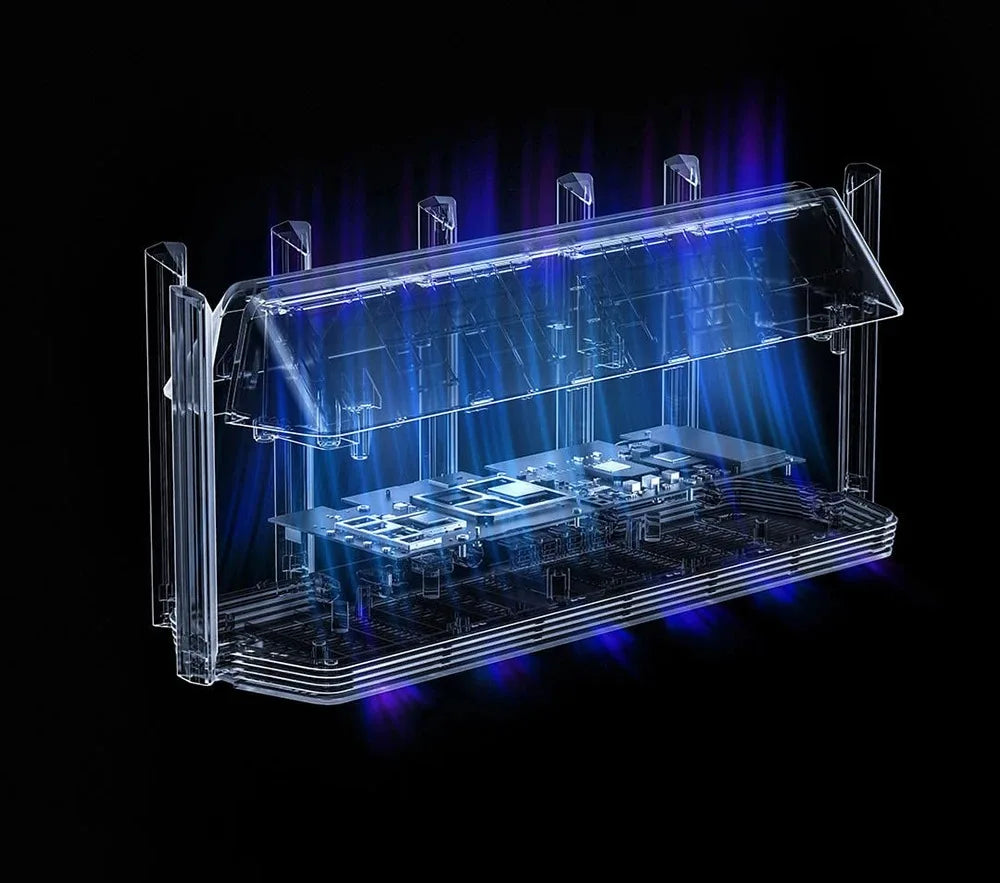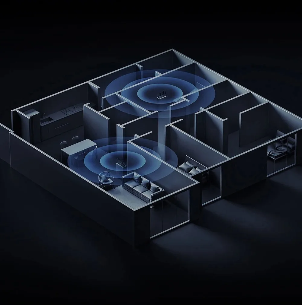 Compared to the previous generation, 2 high-performance signal amplifiers have been added to the 2.4GHz band, making signal reception more sensitive and reducing blind spots. In combination with Mesh functionality, it provides good signal coverage throughout the house.Triple-sided circulation cooling design