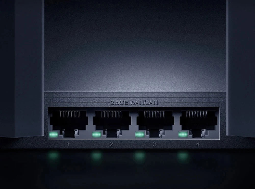 There are heat dissipation holes on the top, side, and bottom of the router, forming a fast circulation cooling channel. This keeps the router working in the best state at all times, avoiding router frequency reduction and device disconnection caused by overheating.4 x 2.5G Ethernet ports