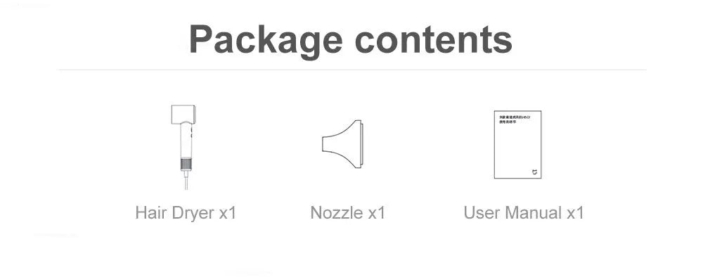 Package contents /Hair Dryer x1 Nozzle x1 /User Manual x1