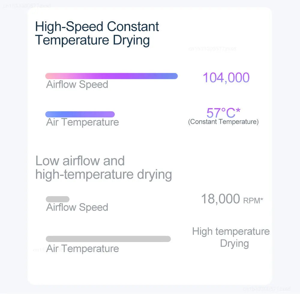 Delicate Hair Strands Protected from "Baking":Utilizing the 57°C* constant temperature high-speed airflow technology, the hairdryer provides a more comfortable temperature and gentle, high-speed airflow to dry your hair. It reduces theuse of high-temperature drying, nurturing both the scalp and hair strands