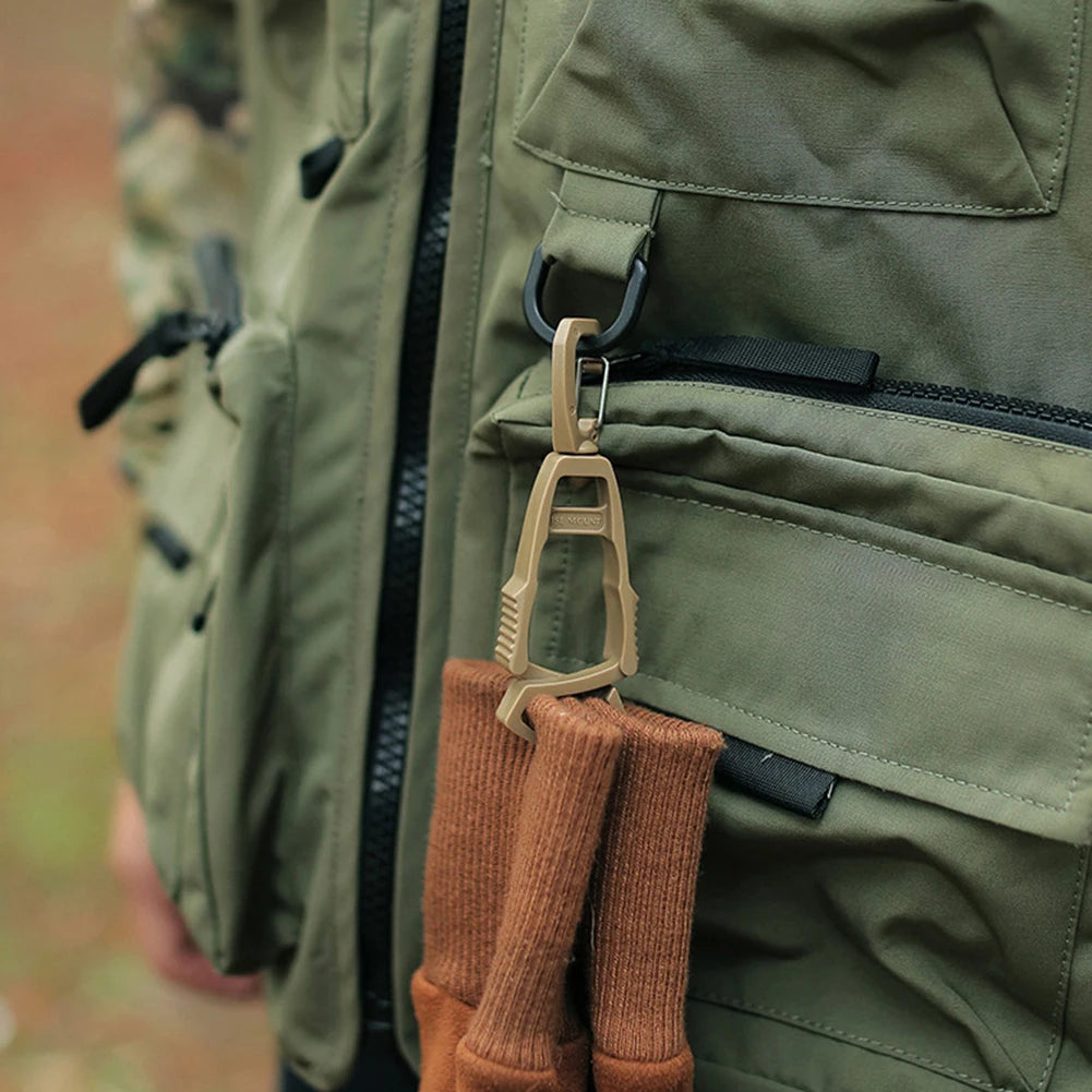 1. Quick-Release Mechanism: Each outdoor glove clip features a one-press release design for effortless access to your gloves. Just a simple two-finger press can swiftly secure or release your items, eliminating the hassle of complicated clasps or buttons and ensuring that your work gear is readily accessible when you need it.