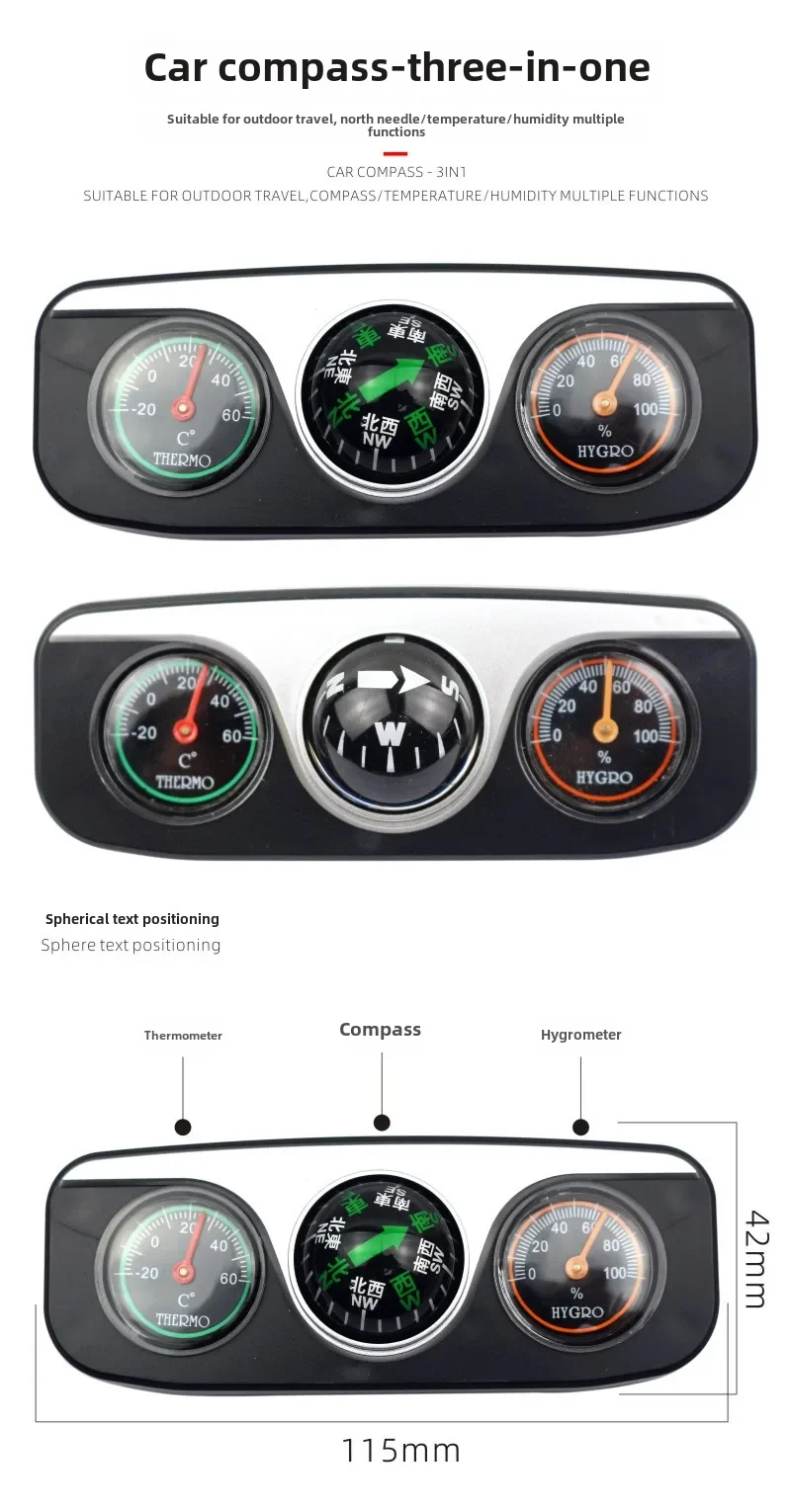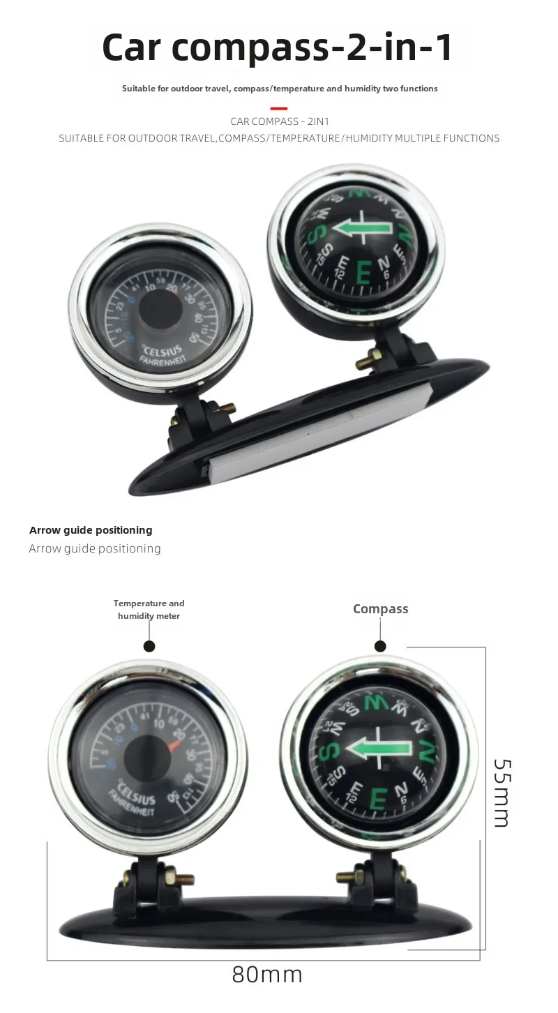 Outdoor Outing Car Guide Ball Self-driving Tour Compass with Thermometer Car Interior Decoration Accessories