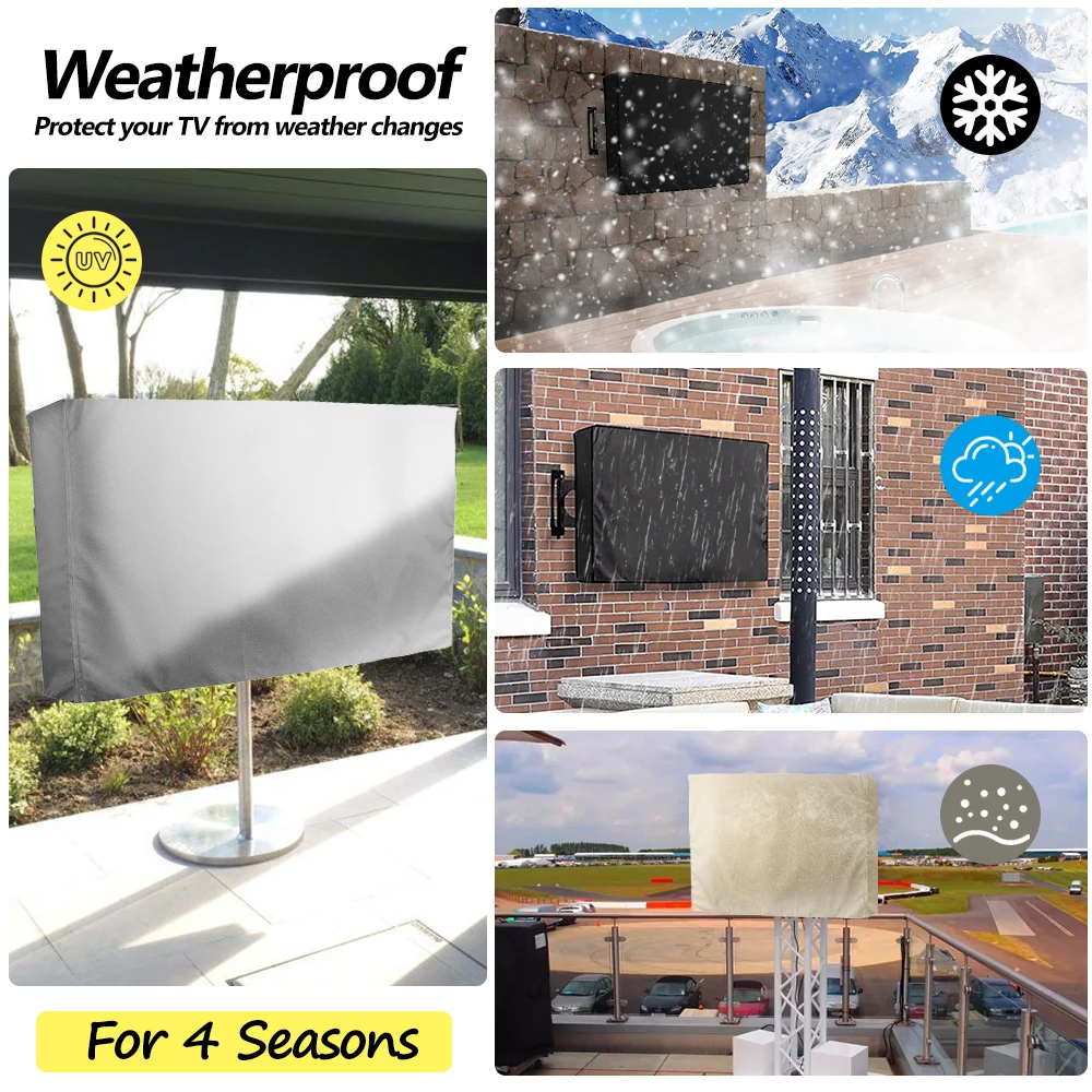 Outdoor TV Screen All-Purpose Dust Cover Black LCD Television Waterproof Resistant Protect Bag 24" 38" 42" 48" 52" 65inch
