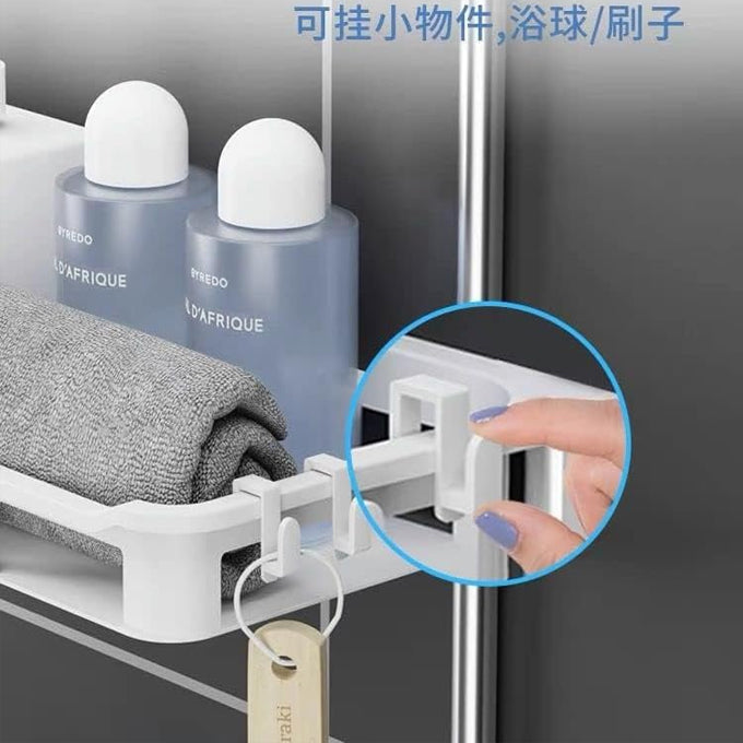 - Wide Application This versatile storage organizer is great for bathrooms, kitchens, garages, dressers, etc. and it can accommodate all your amenities, including soap, shampoo, shaving foam, toilet paper, as well as potted plants, magazines, and other items. Equipped with four hooks for hanging towels, bath sponges, brushes, and more.