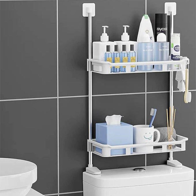- Space-Saving Storage Rack This space-saving toilet storage shelf effectively utilizes the space above the toilet, organizes various items in the bathroom, reduces bathroom clutter, and increases storage space to make your bathroom clean and tidy.