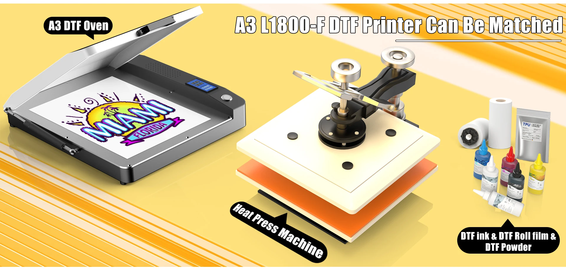 1.L1800-FPrinter A3 +2. Roll DTF Film +3.1 KG Hot Melt Powder+4.600ml DTF Ink