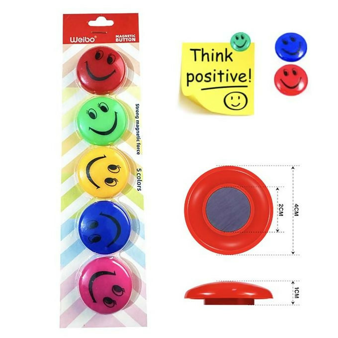 Pack of 5 (30mm) Colorful Emoji Magnets for Magnetic White Notice Boards Fridge Planning Buttons Stick Notes, Photos, Charts