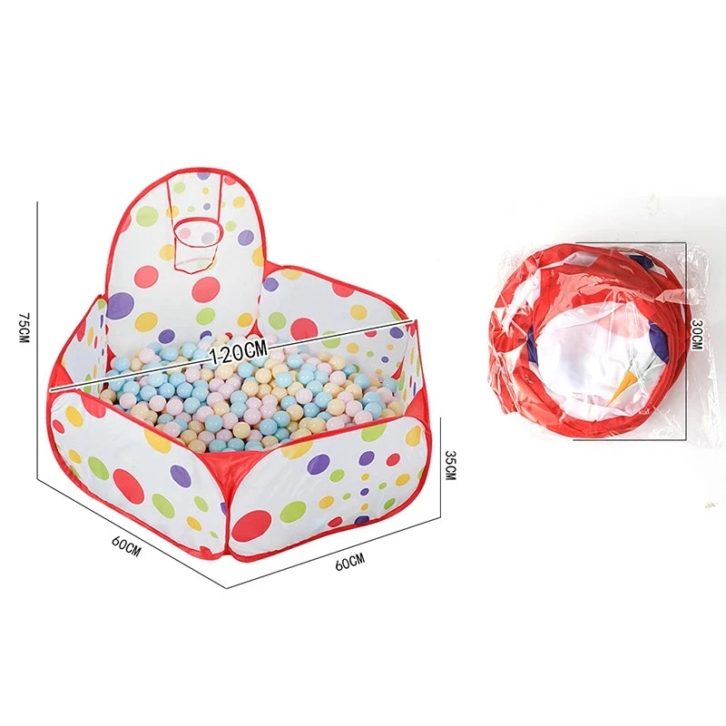 PANGDUBE 1.2m Folding Baby Playpen with Basket Hoop Children's Tent Kid Ball Pit Dry Pool Without Balls Play Tent for Children
