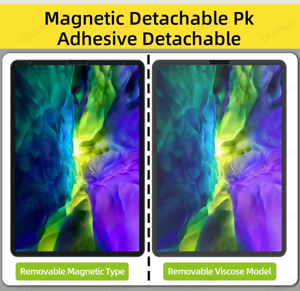 Paper Feel Screen Protector Film for iPad Air 11in 2024 Pro 11/12.9 Air 4 5 10/9/8/7th Generation Removable Magnetic Attraction