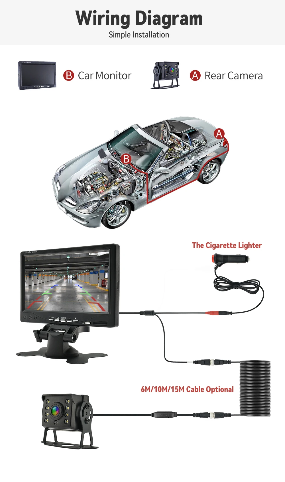 7 INCH TFT/LED LCD MONITOR: With 7 inch big screen to show you the image from the camera