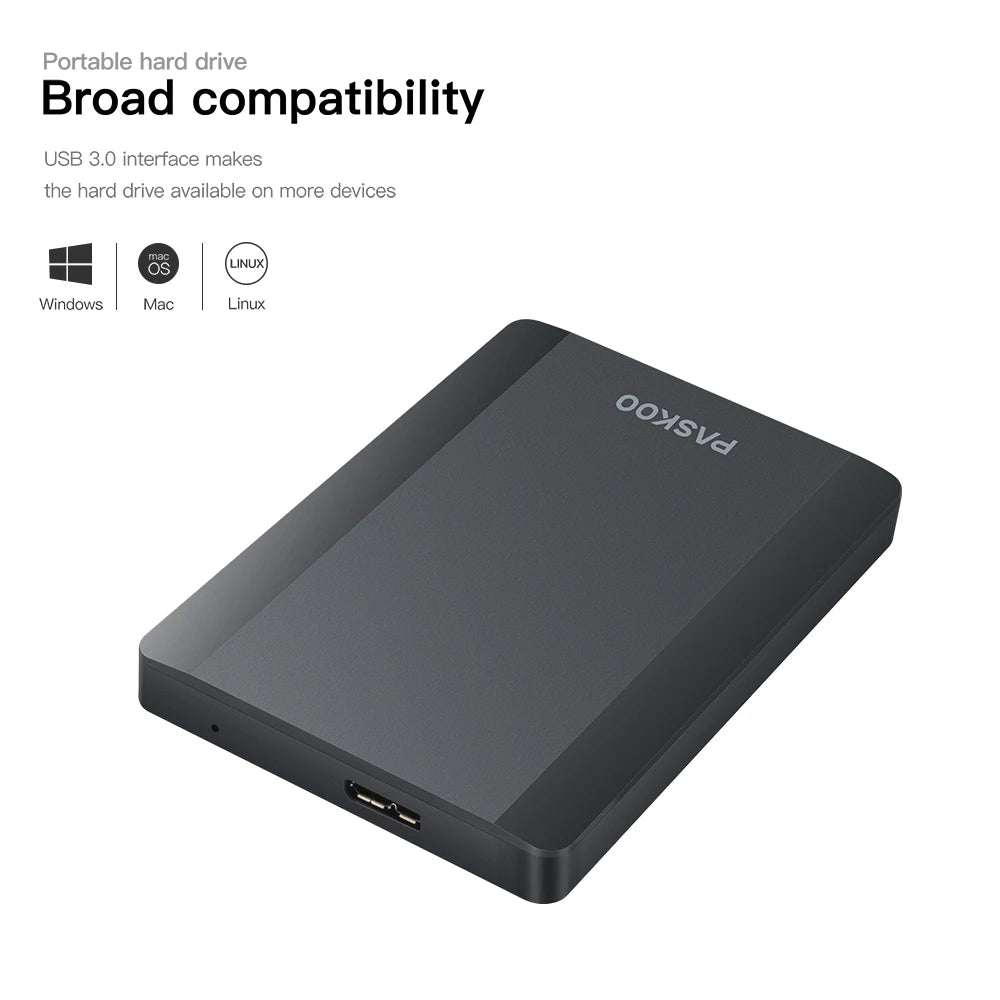 PASKOO HDD 2.5'' Portable External Hard Drive 500GB/1TB/2TB USB3.0 Storage Compatible for PC,Mac,Desktop,MacBook,Xbox