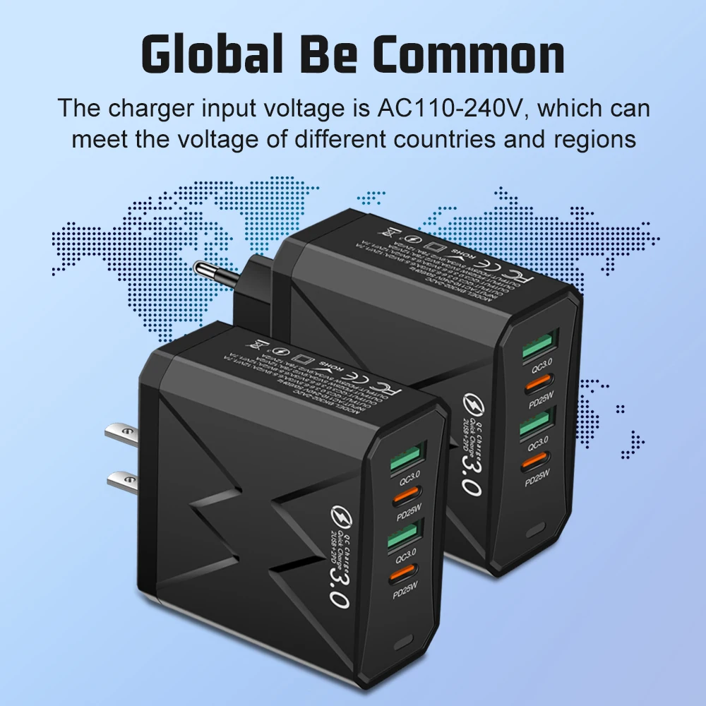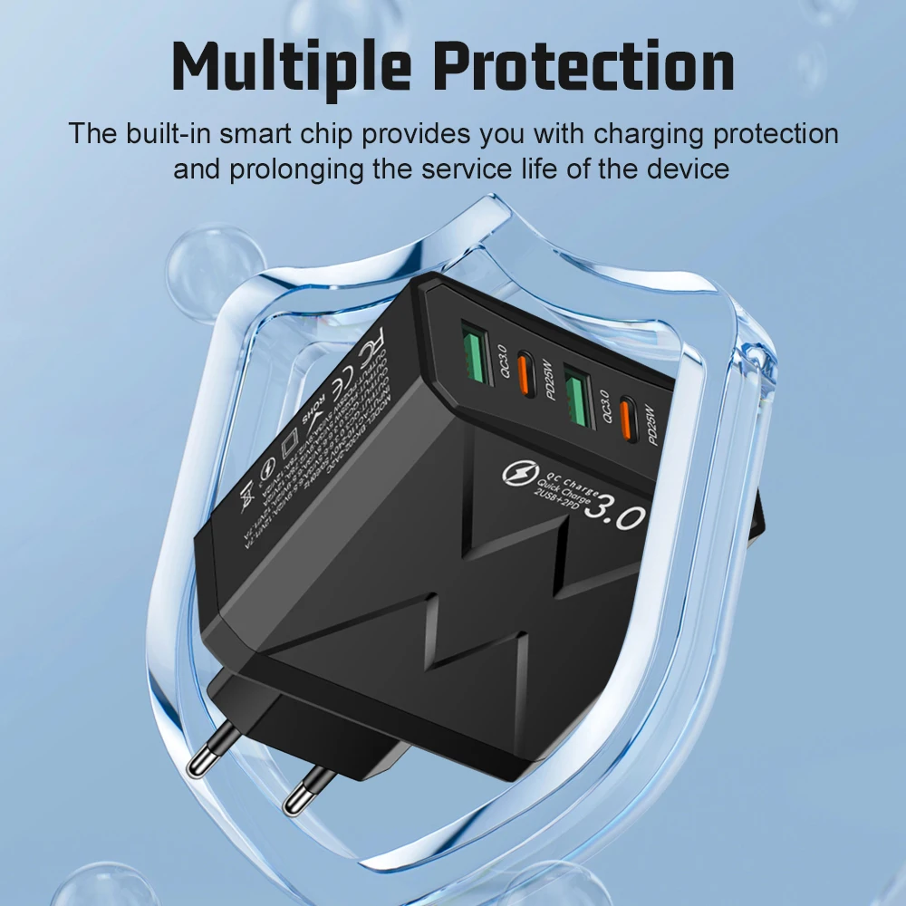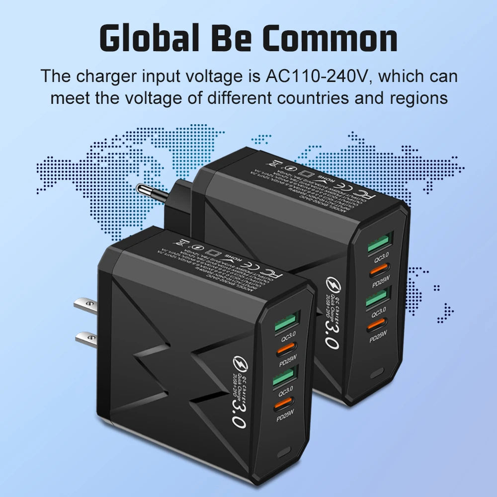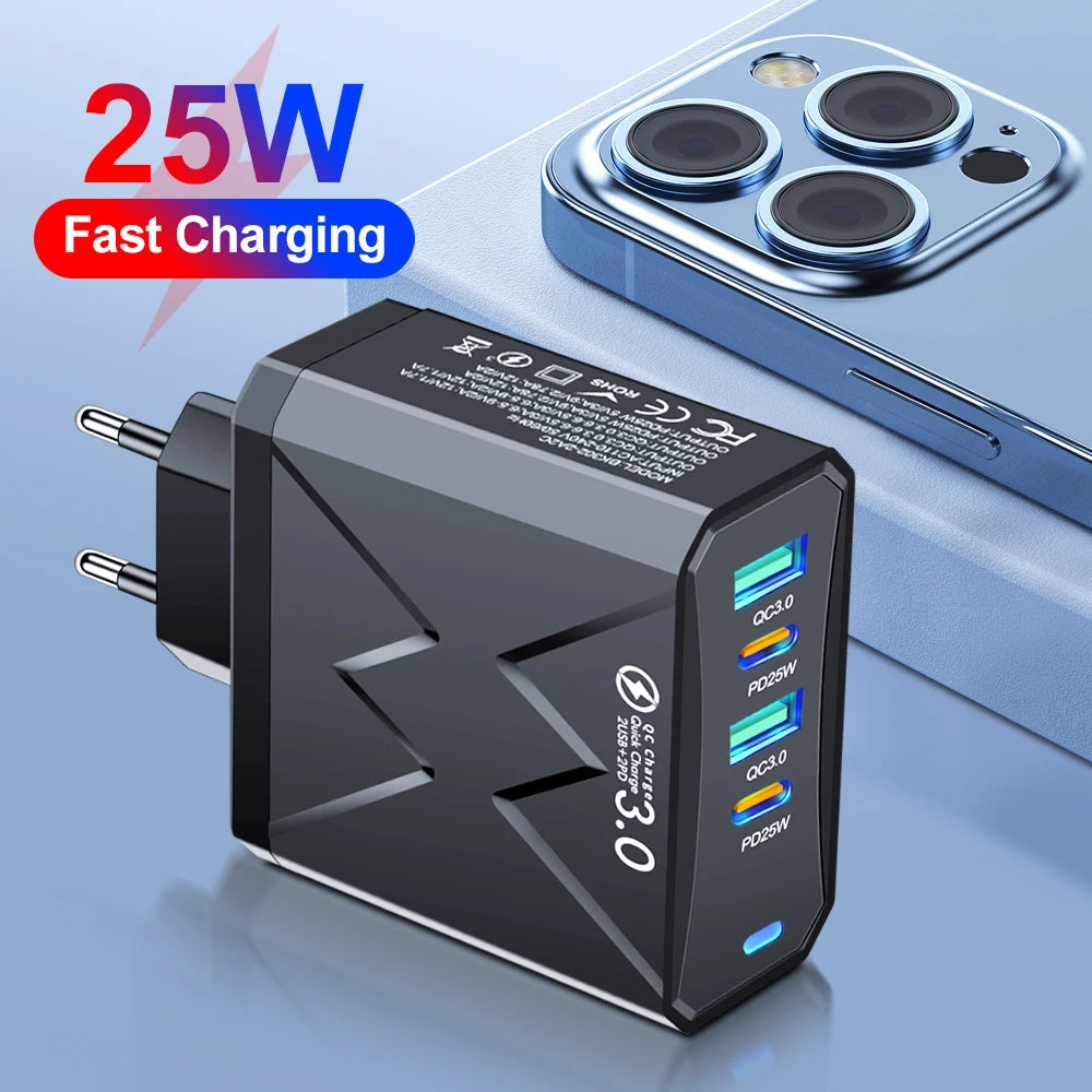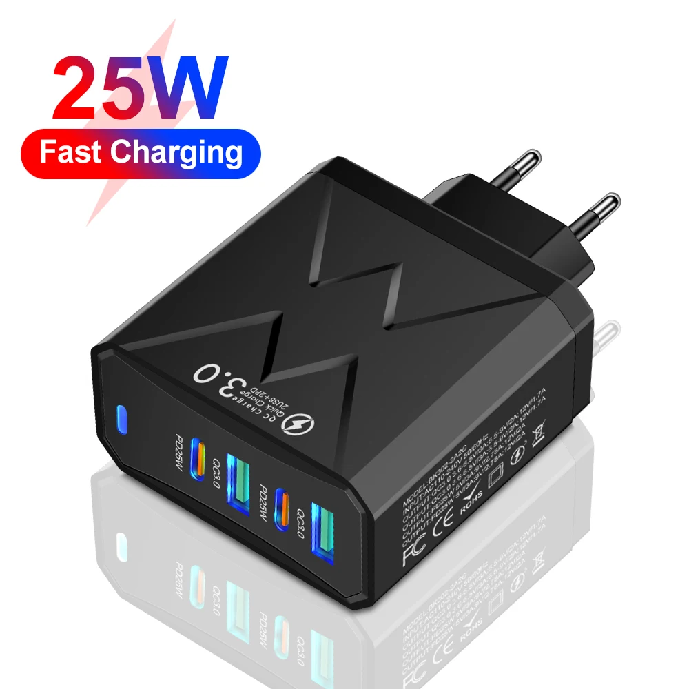 PD 25W USB C Charger 4 Ports 45W Fast Charging Type C Phone Adapter For iPhone 15 14 Samsung Xiaomi Quick Charge3.0 Wall Charger