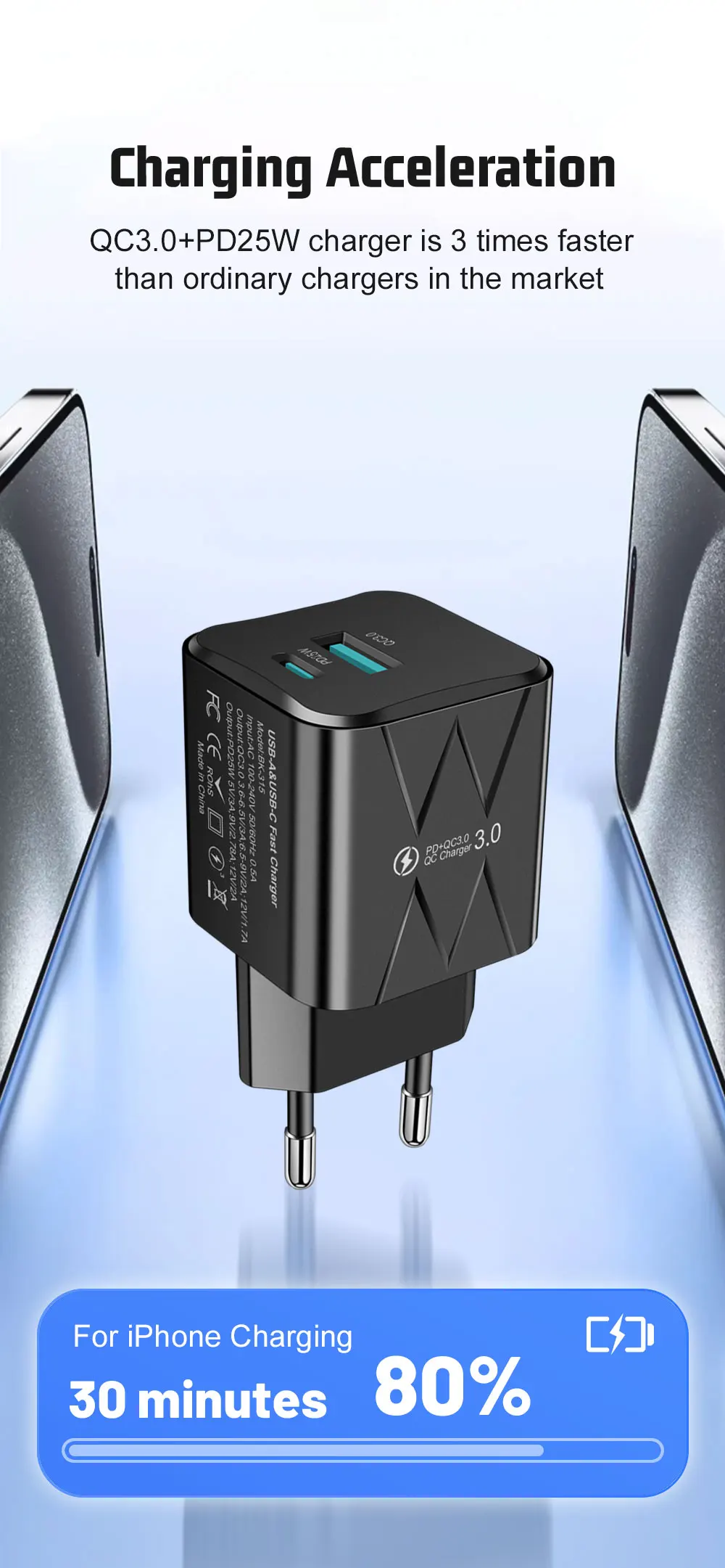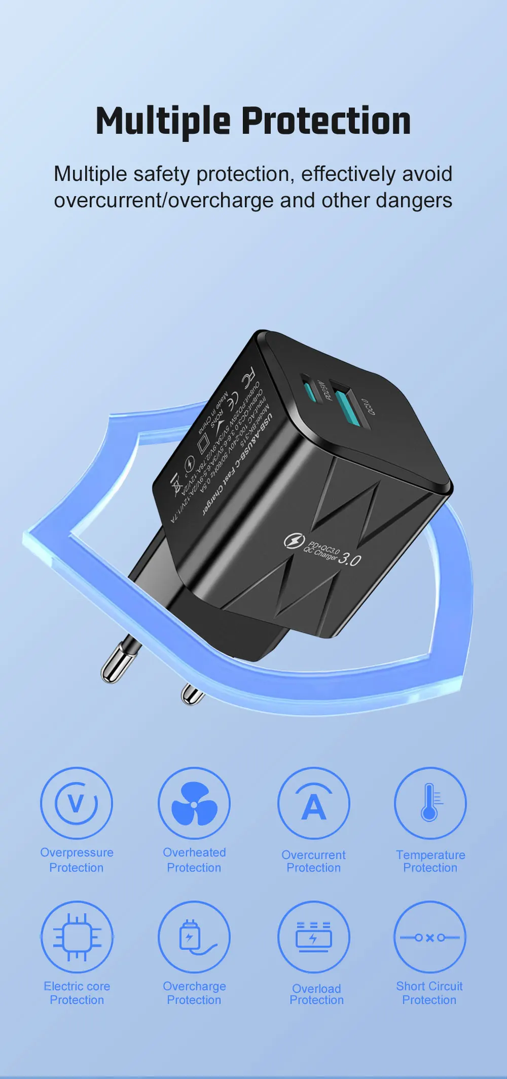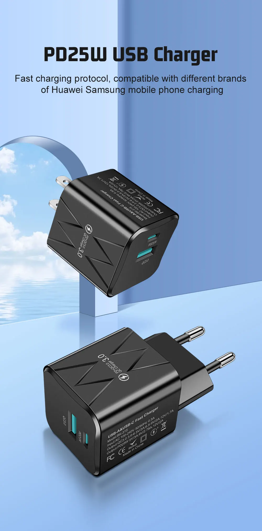 PD 25W USB C Charger Fast Charging Type C Phone Charger Quick Charge 3.0 Adapter For iPhone 15 Pro Max Xiaomi Samsung EU/US Plug
