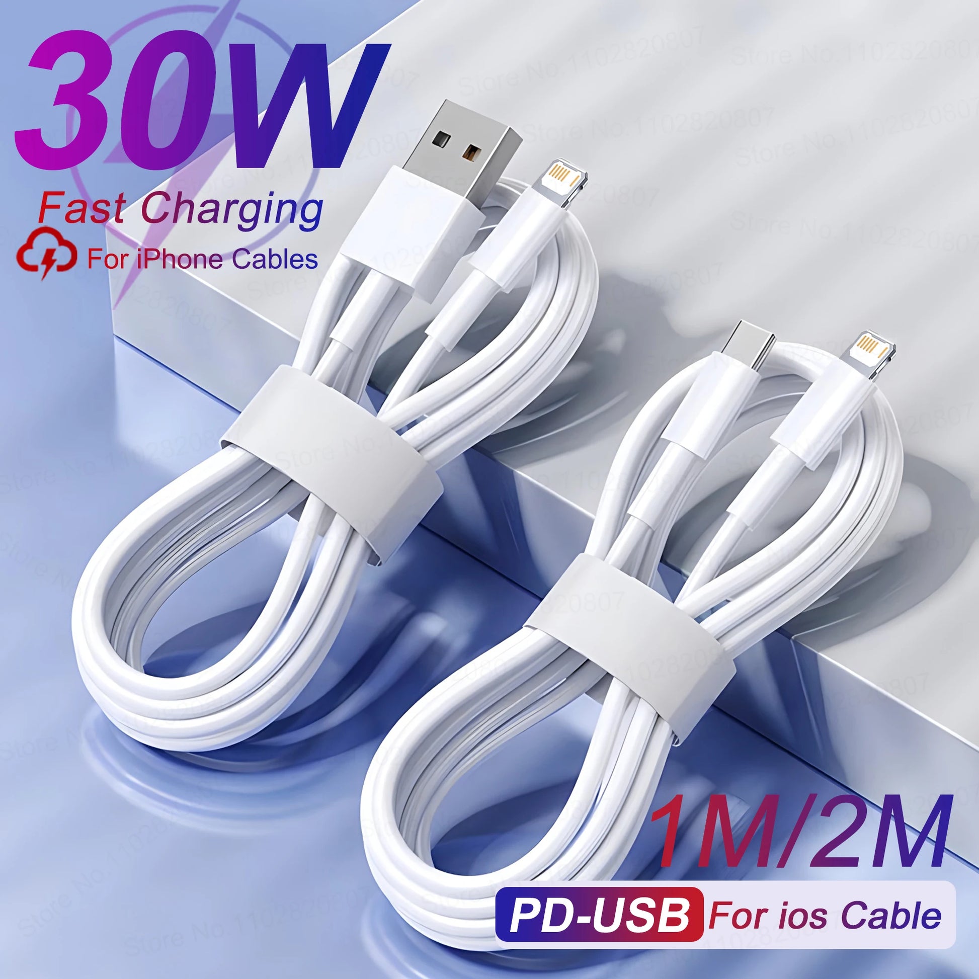 PD 30W USB A Cable For Apple iPhone 14 13 11 12 Pro Max XS XR X 7 8 Plus Fast Charging 2M USB C Data Cables Charger Accessories