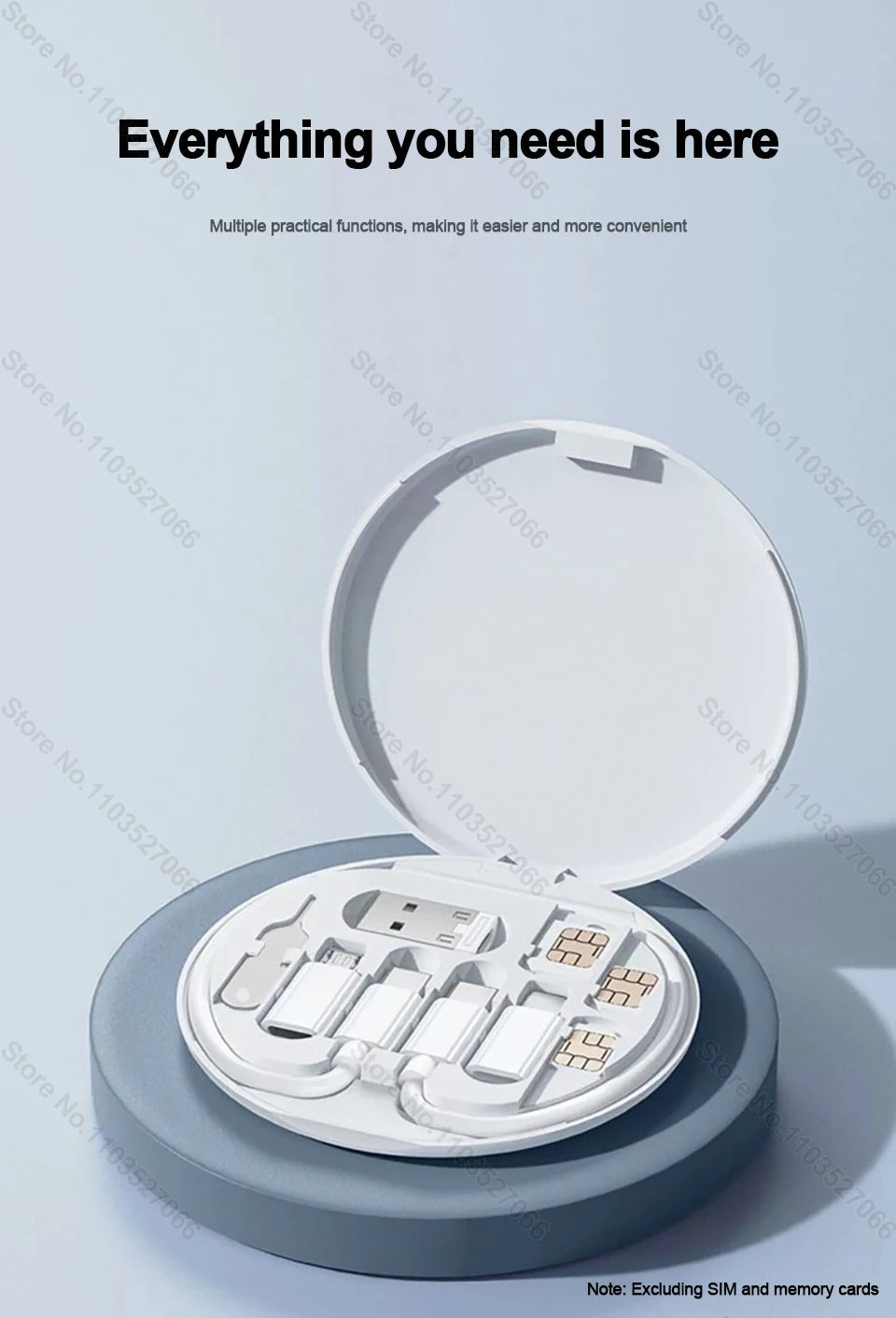 PD 60W Multifunctional USB Type C Data Cable Set Fast Charging For IPhone Xiaomi Charger Storage Box Adapter Card Pin Travel Box