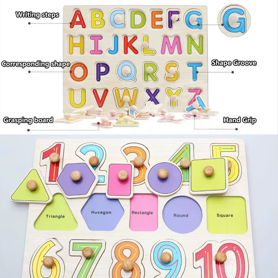 This wooden peg puzzle set offers a fun and interactive way for children to explore letters, numbers, shapes, and more. Designed to support early learning, these puzzles provide hands-on practice that helps develop fine motor skills and cognitive abilities.