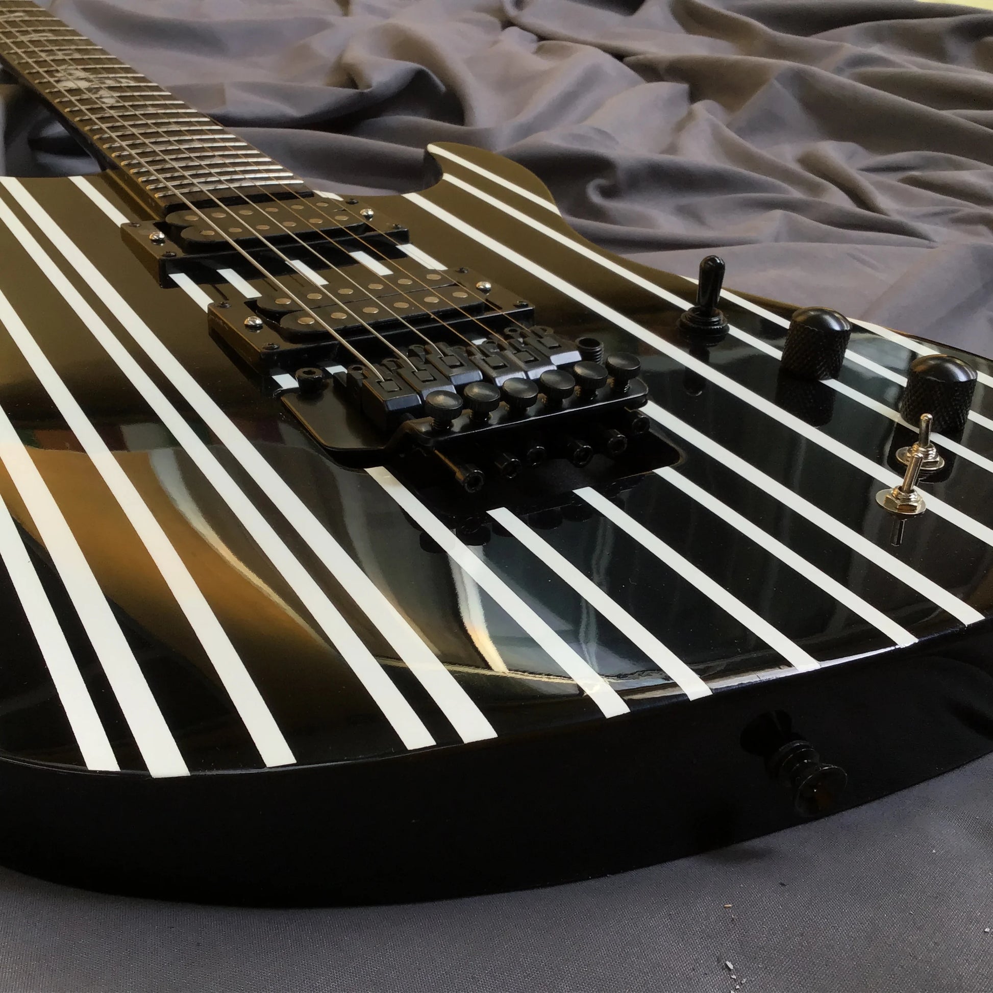 Perfect tone electric guitar, black with withe, high-quality material, customizable,hot sale in stock guitar