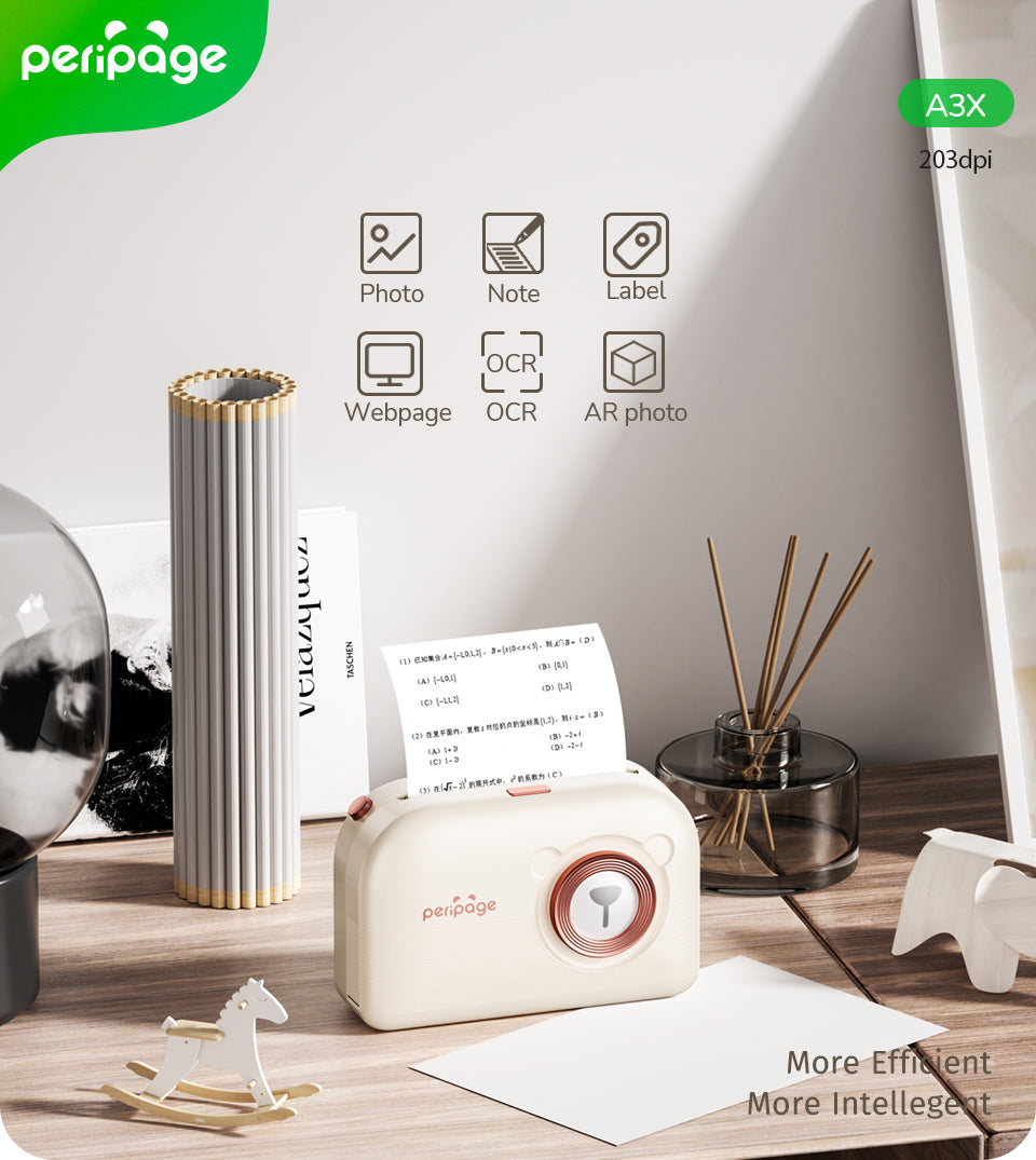 PeriPage A3X Mini Portable Photo Sticker Printer 203dpi BT Wireless Mobile Thermal Printer Receipt Label Maker Support