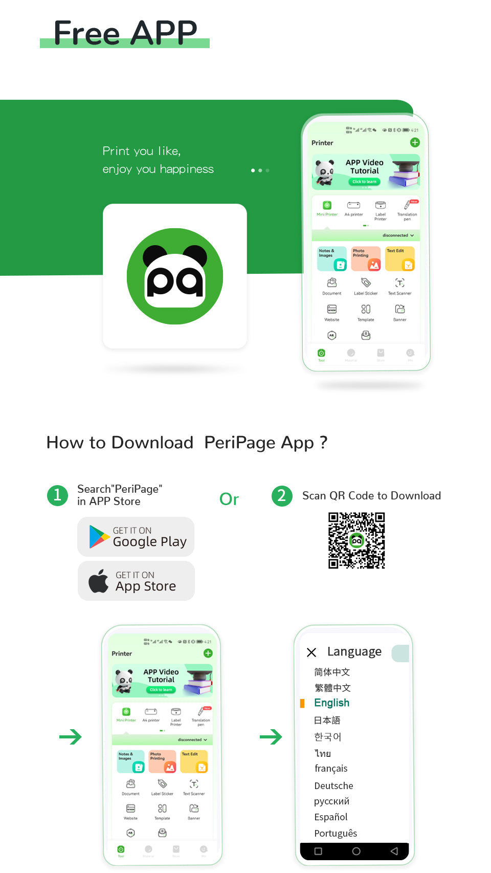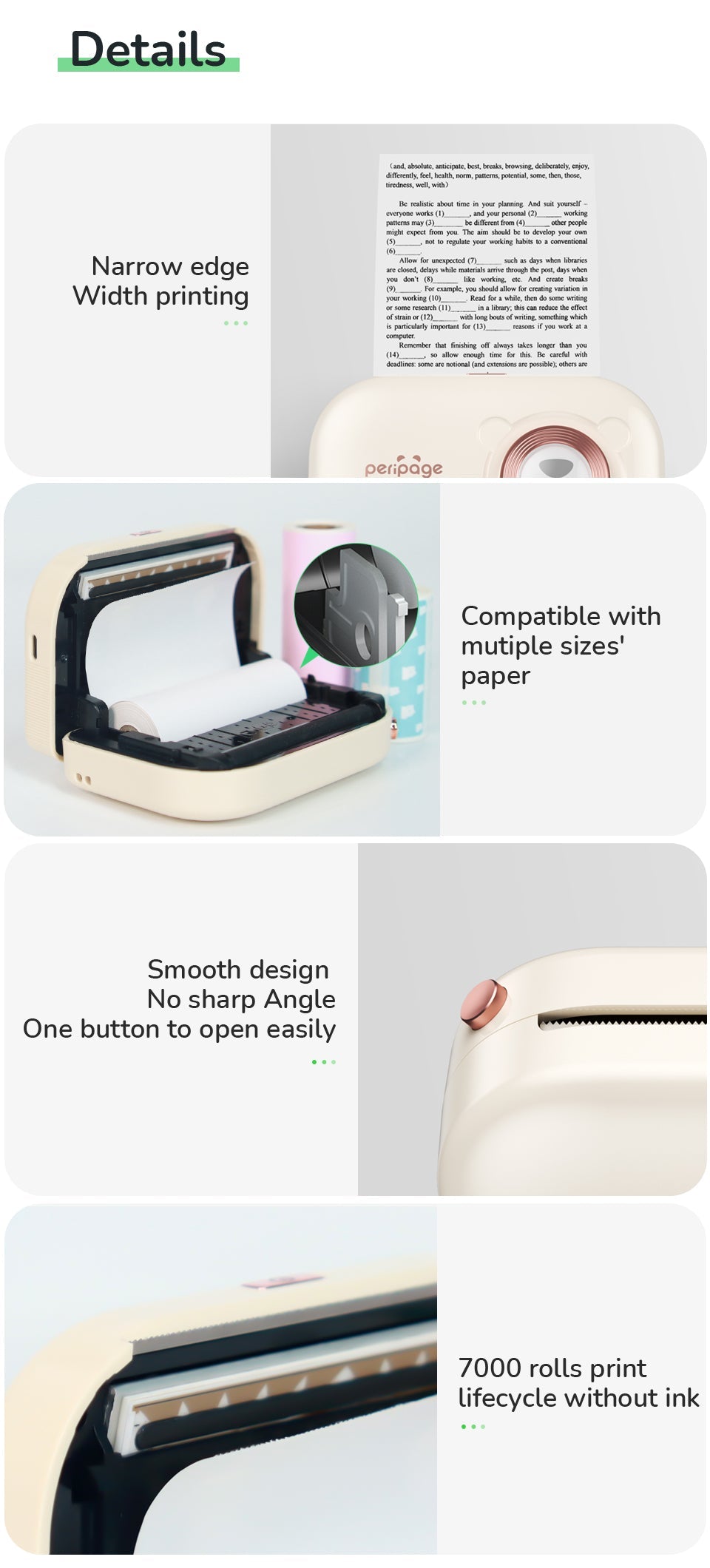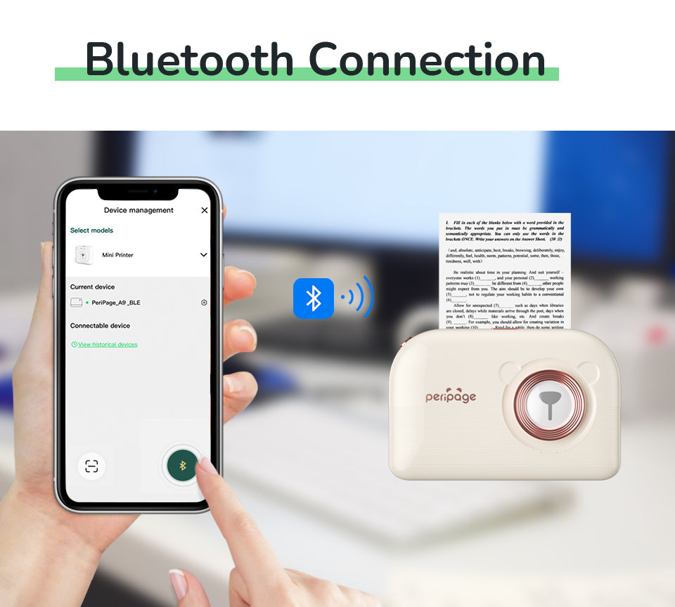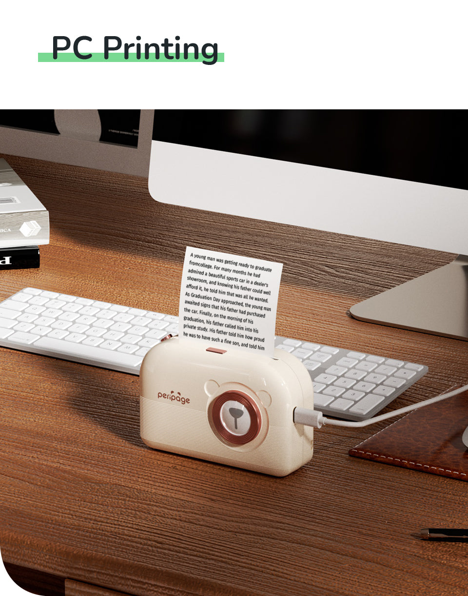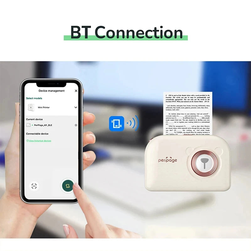 【 Mini Printer】Support Wireless BT connected with smartphone and USB cable connected with PC. Compatible with Android & iOS & Windows System. Please follow the user guide to download relative APP "PeriPage" on your smartphone, you can print anytime and anywhere when they connect successfully.