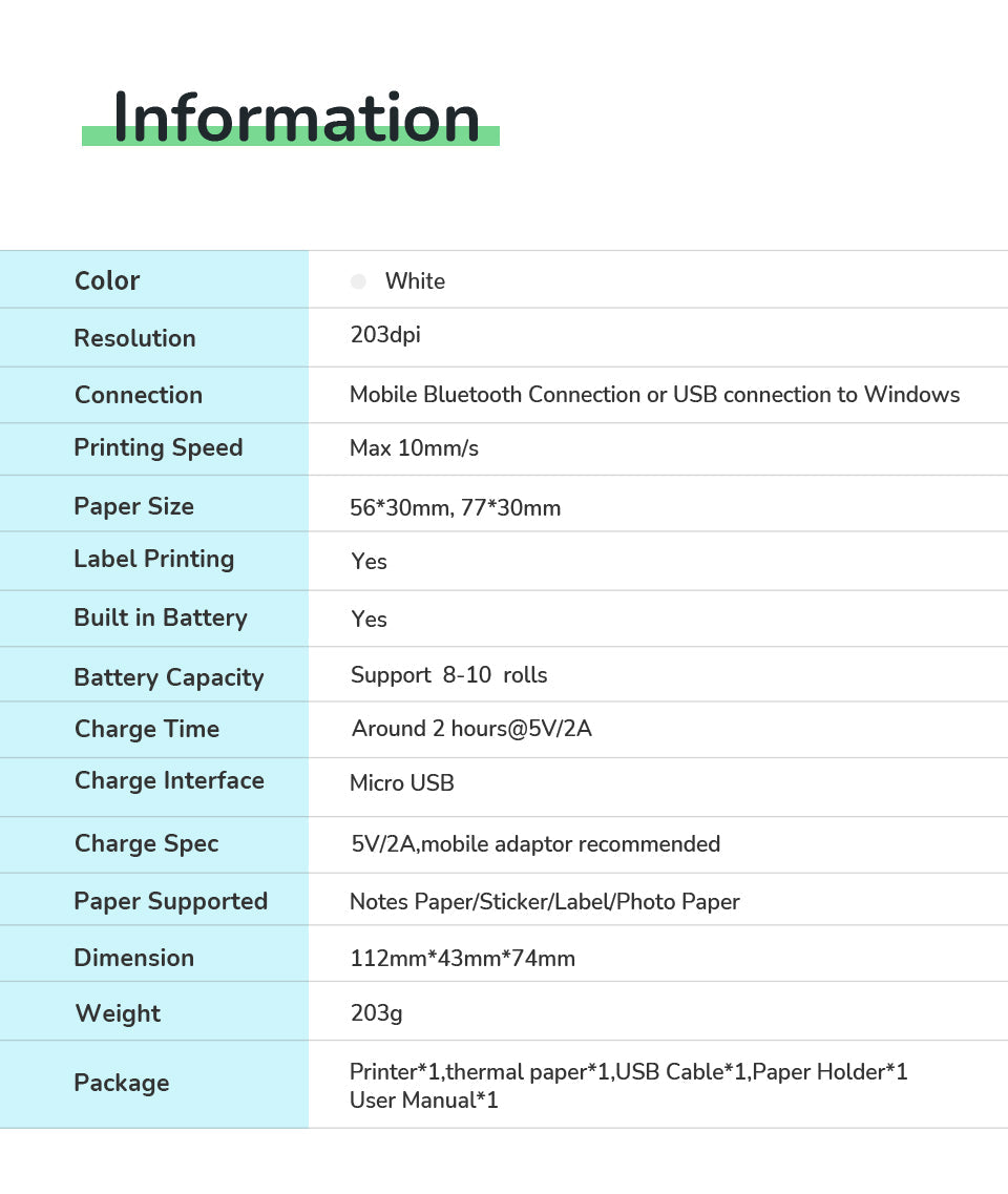 Paper Supported: Notes Paper/Sticker/Label/Photo Paper