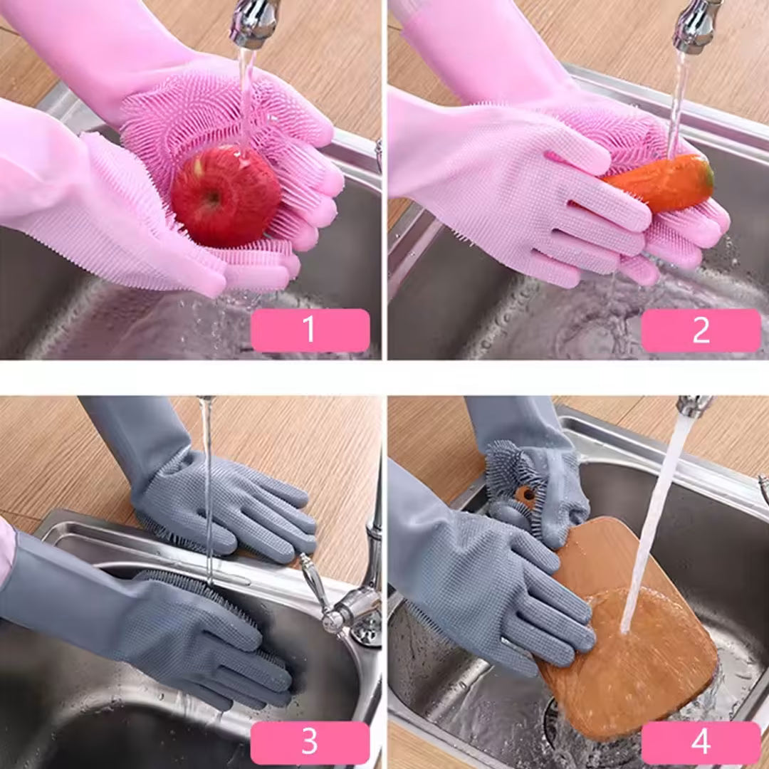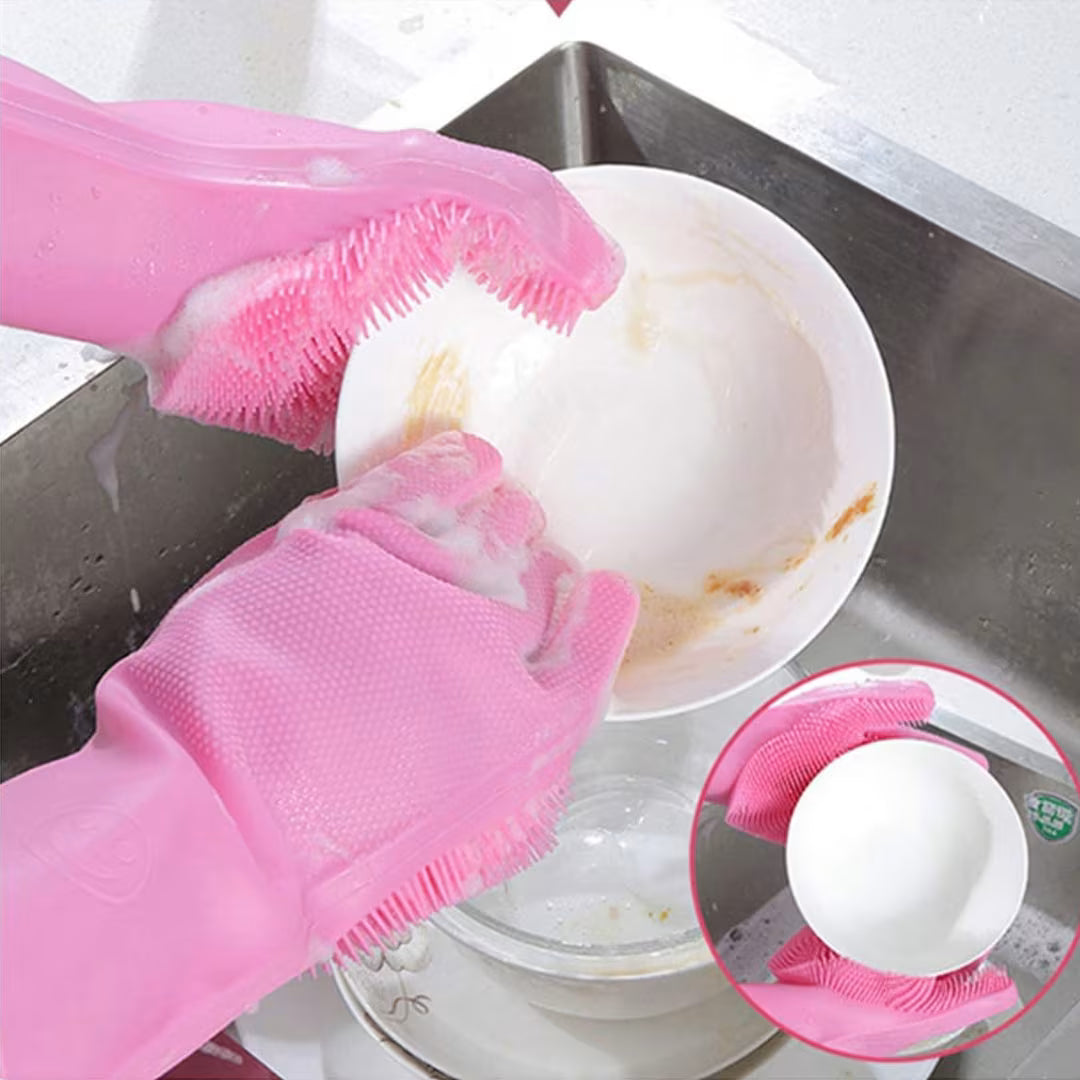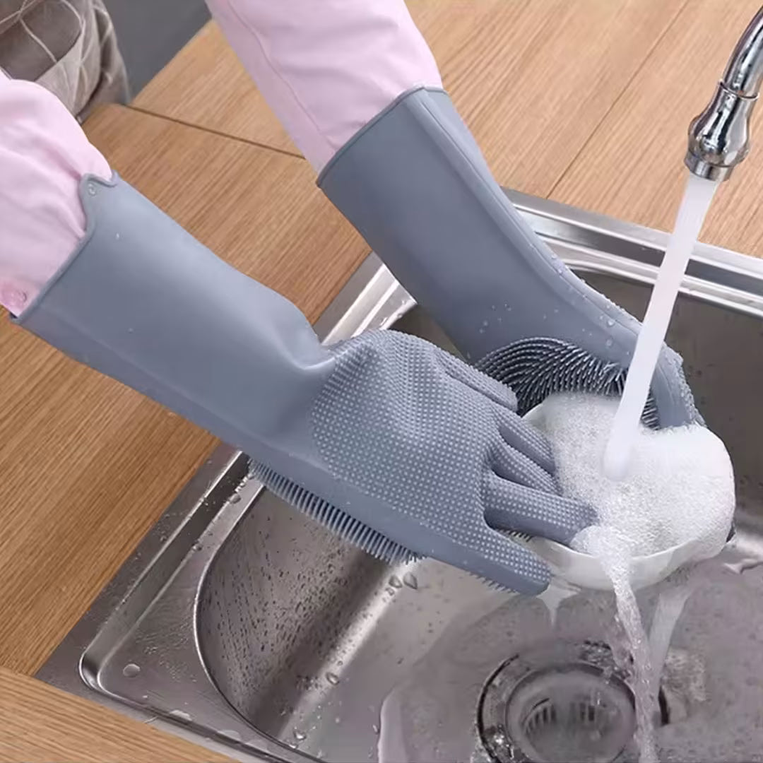 Protect your hands from harsh chemicals and grime with these silicone cleaning gloves. Designed for both kitchen and household tasks, they offer superior grip and effective scrubbing power.