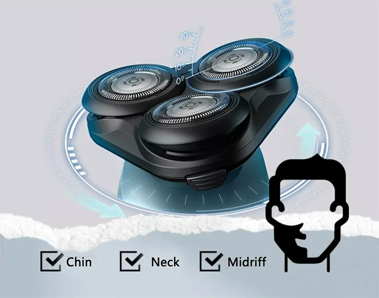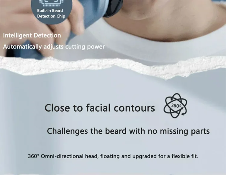 6, The shaver automatically senses the density of the beard and adjusts the cutting force accordingly. Efficient shaving for thicker beards