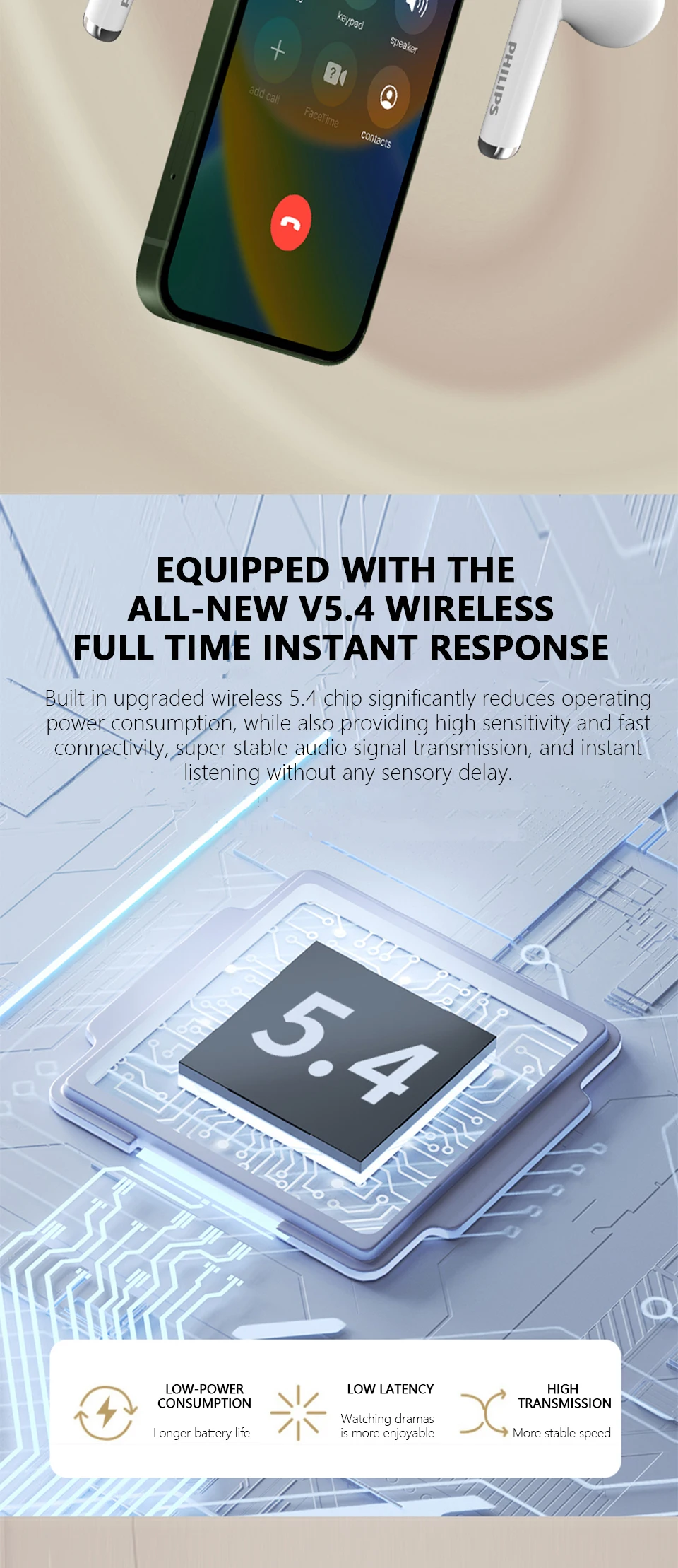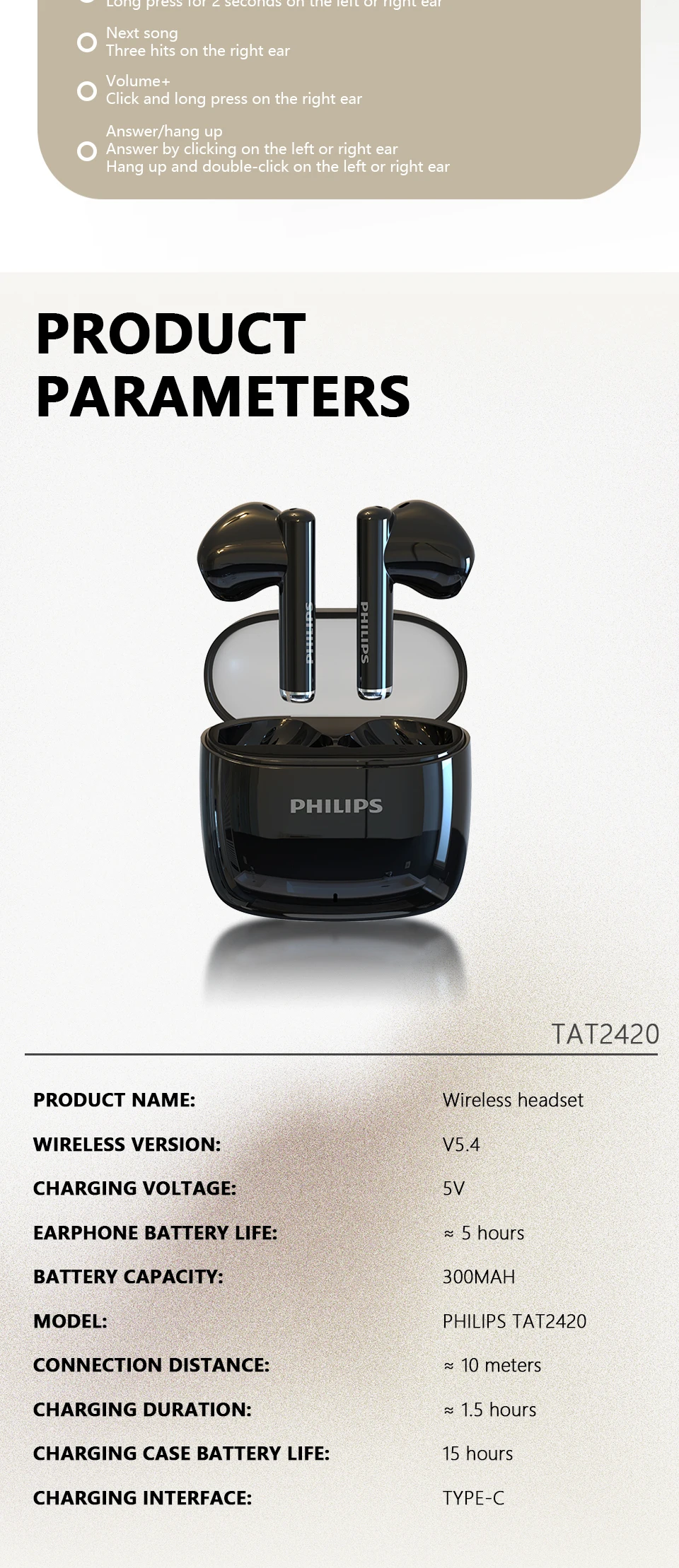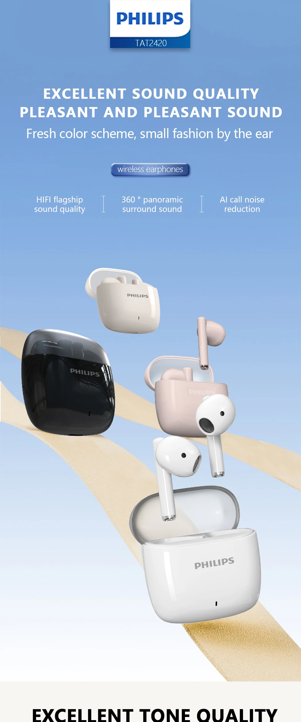 PHILIPS TAT2420 Semi-in-ear Wireless Bluetooth Earphones HIFI Sound Quality Call Noise Reduction Mini Portable Music Headset