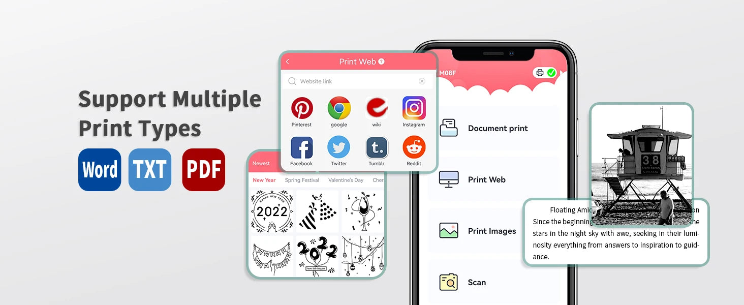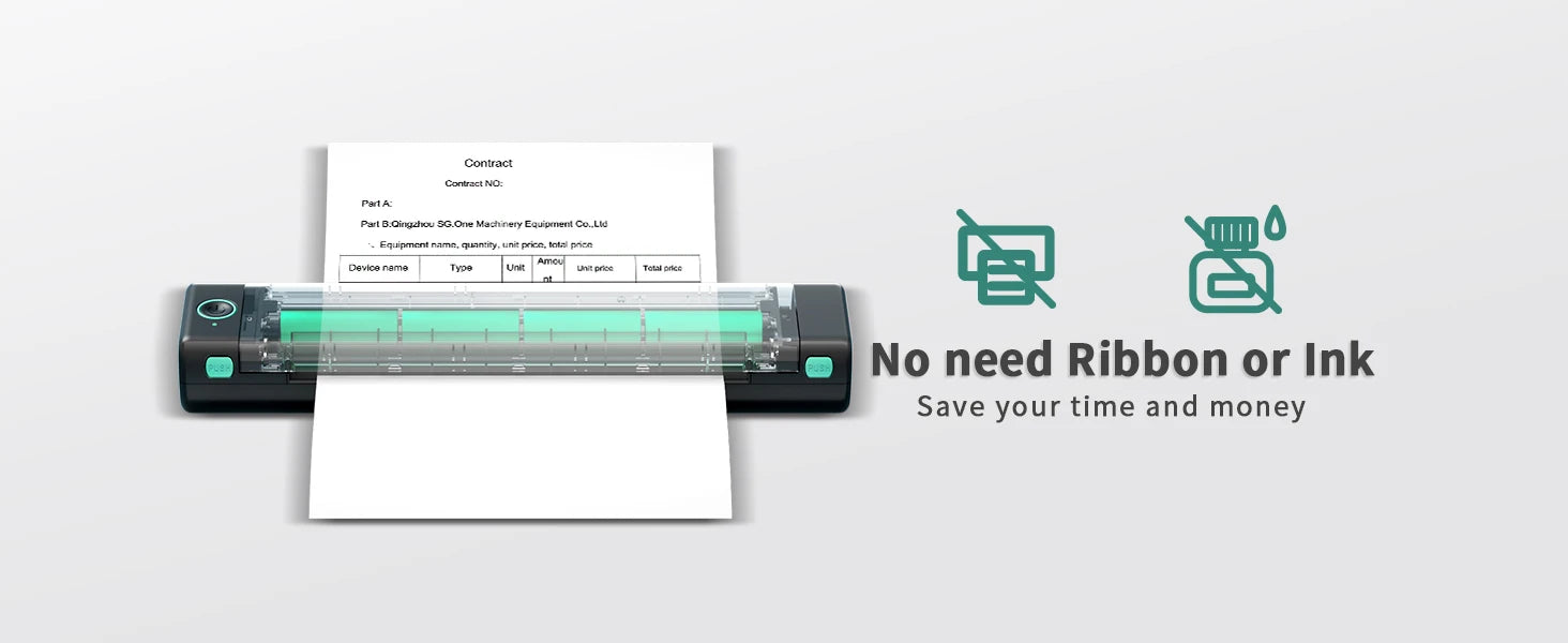 Wireless Printer Portable - This inkless printer comes with a 1200 mAh rechargeable battery that doesn't need to be plugged in for use. It can be recharged by a computer, powerbank and car with type-c cable.